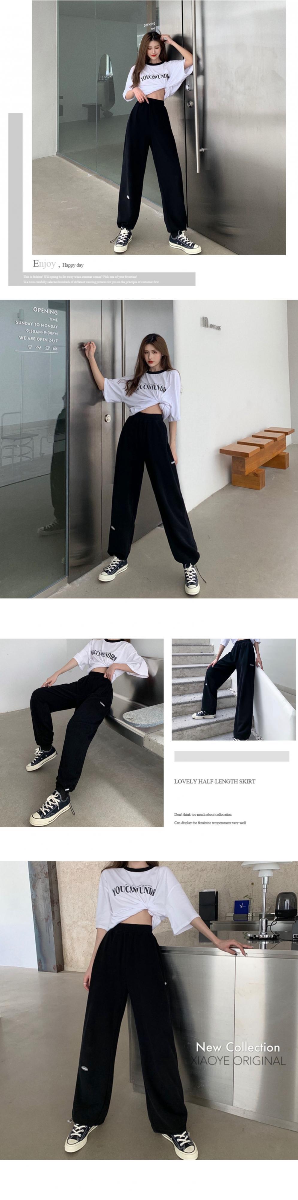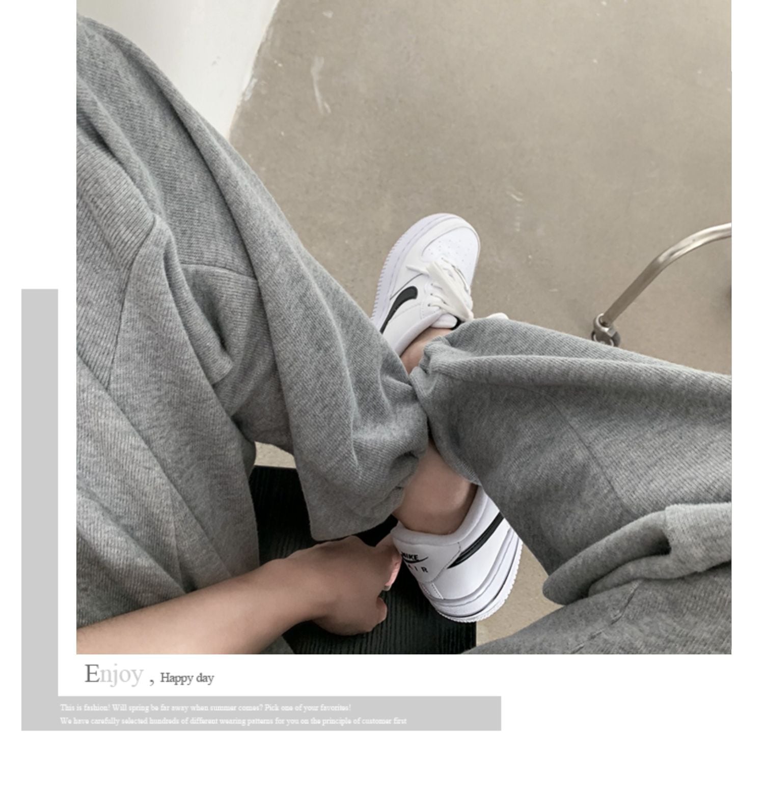 グレーのストラップ付きスポーツパンツレディース秋のハイウエストパンツルーズストレートカジュアルパンツ2020新しいワイルドガードパンツ ブラックストロベリース65348123145