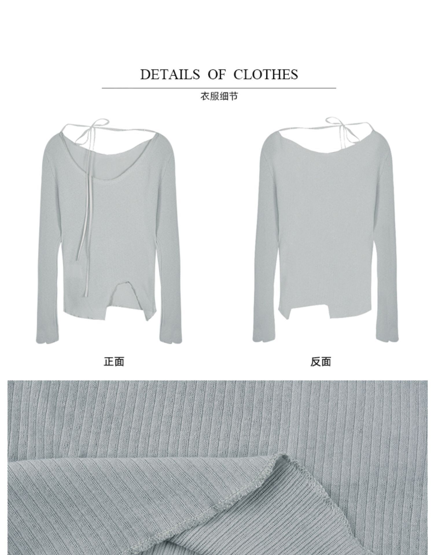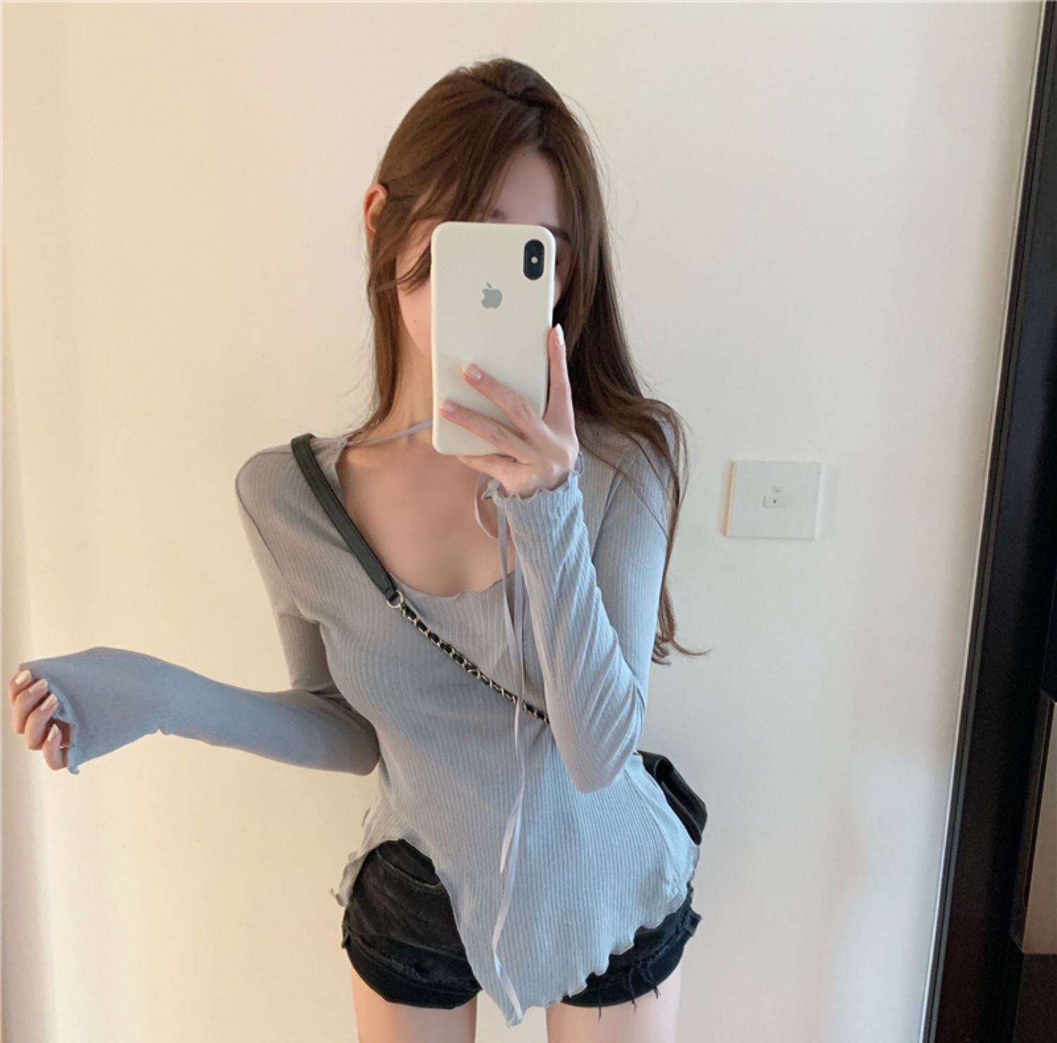 スリット不規則長袖Tシャツレディース秋スリムタイトフィット2020新デザインセンスグレートップインタイド ブラックストロベリース56912649569