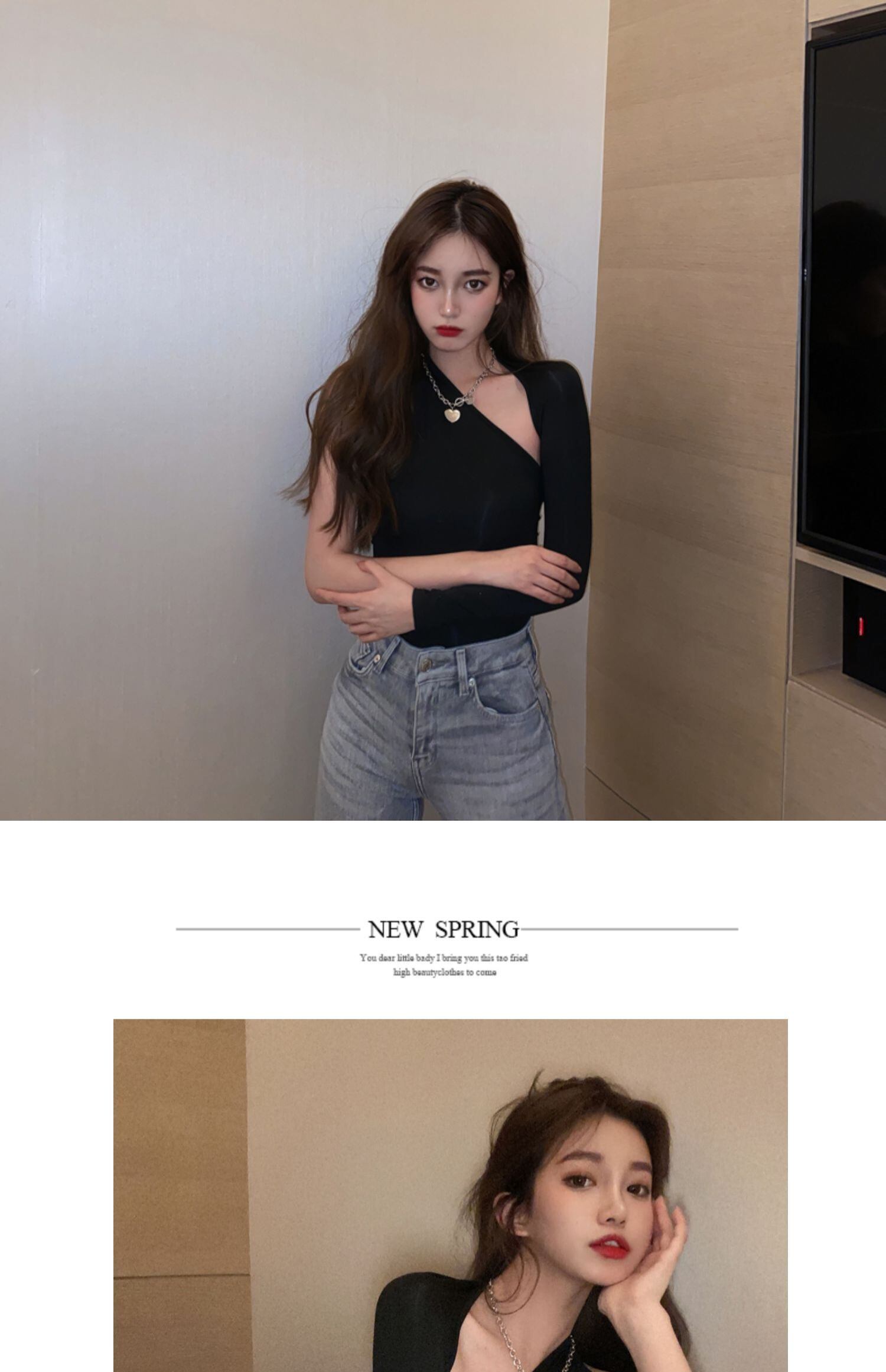 黒のTシャツ女性の秋の注意深いマシンストラップレスセクシーなタイトフィット長袖ボトミングシャツ2020新しい中空トップ ブラックストロベリース58773896481