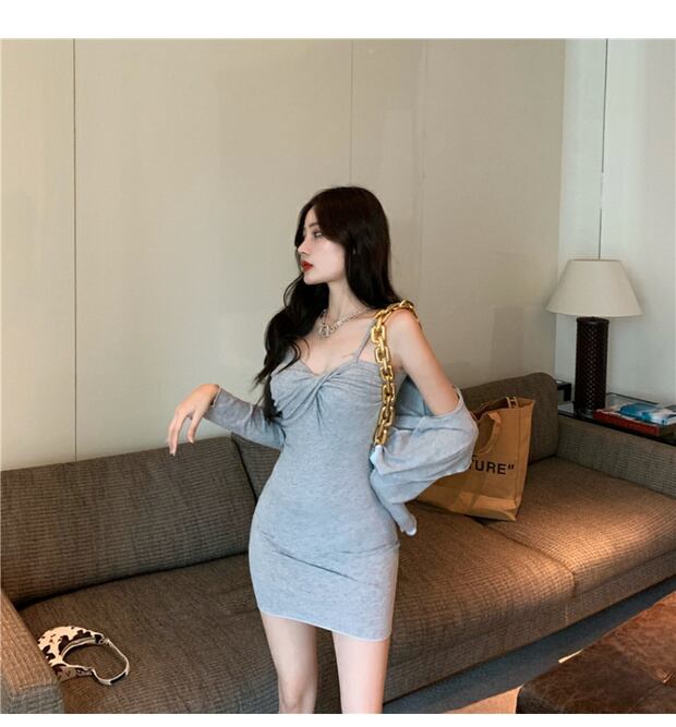 グレーボウスモールスリングドレス女性夏セクシーバッグヒップスカート2020新しいアウタードレス ブラックストロベリース96383281371