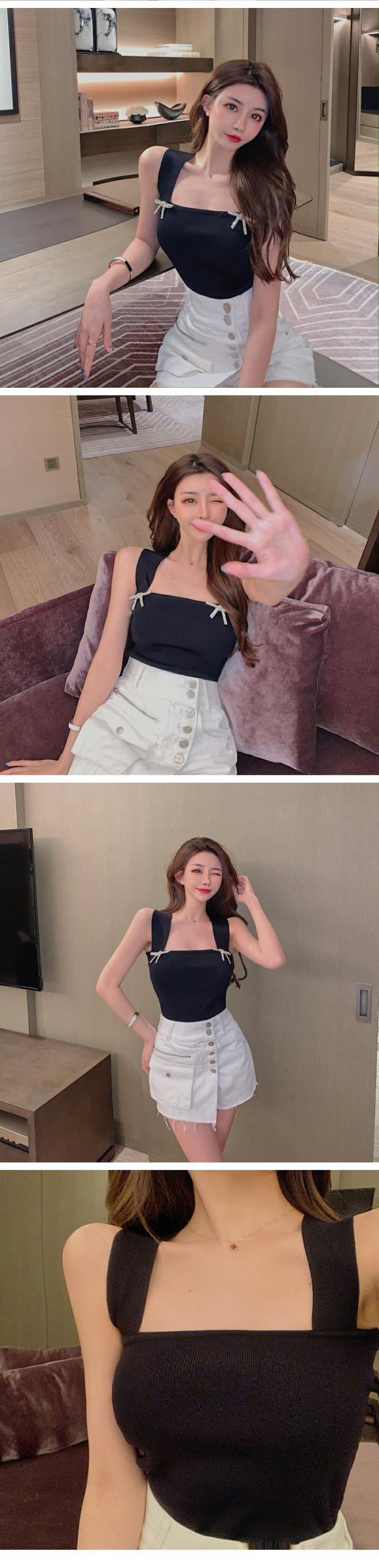 ホワイトサスペンダーレディースサマーボウノットラインストーンノースリーブベスト2020ニュースタイルインナーベースとアウターウェアトレンディトップ ブラックストロベリース46928916517