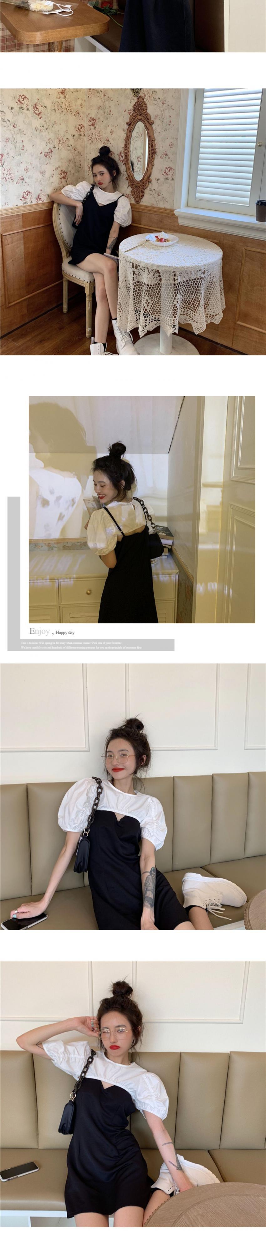 Vネックブラックサスペンダードレスレディースサマー気質ウエストAラインショートスカート2020新作スモールスカート ブラックストロベリース99643367342