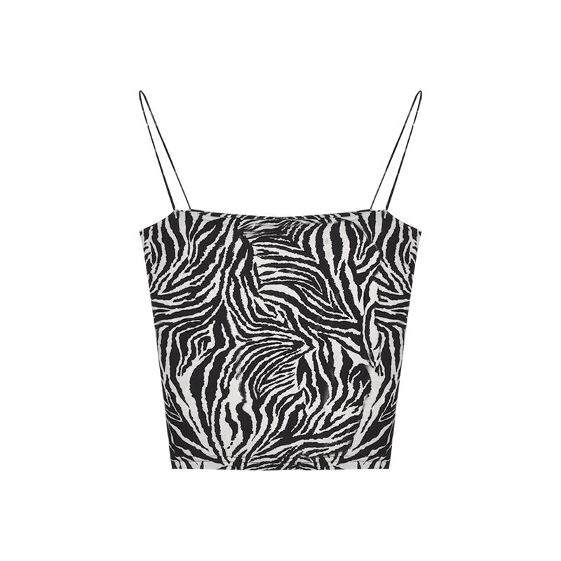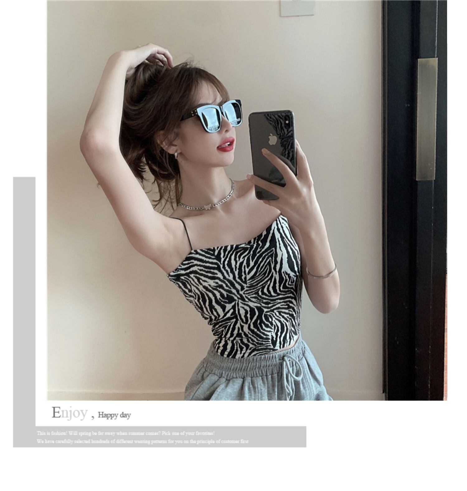 ゼブラスリムスリムストラップオフショルダーショートセクシーベストアウタートップサマーノースリーブノースリーブアンダーシャツ ブラックストロベリース81938807472