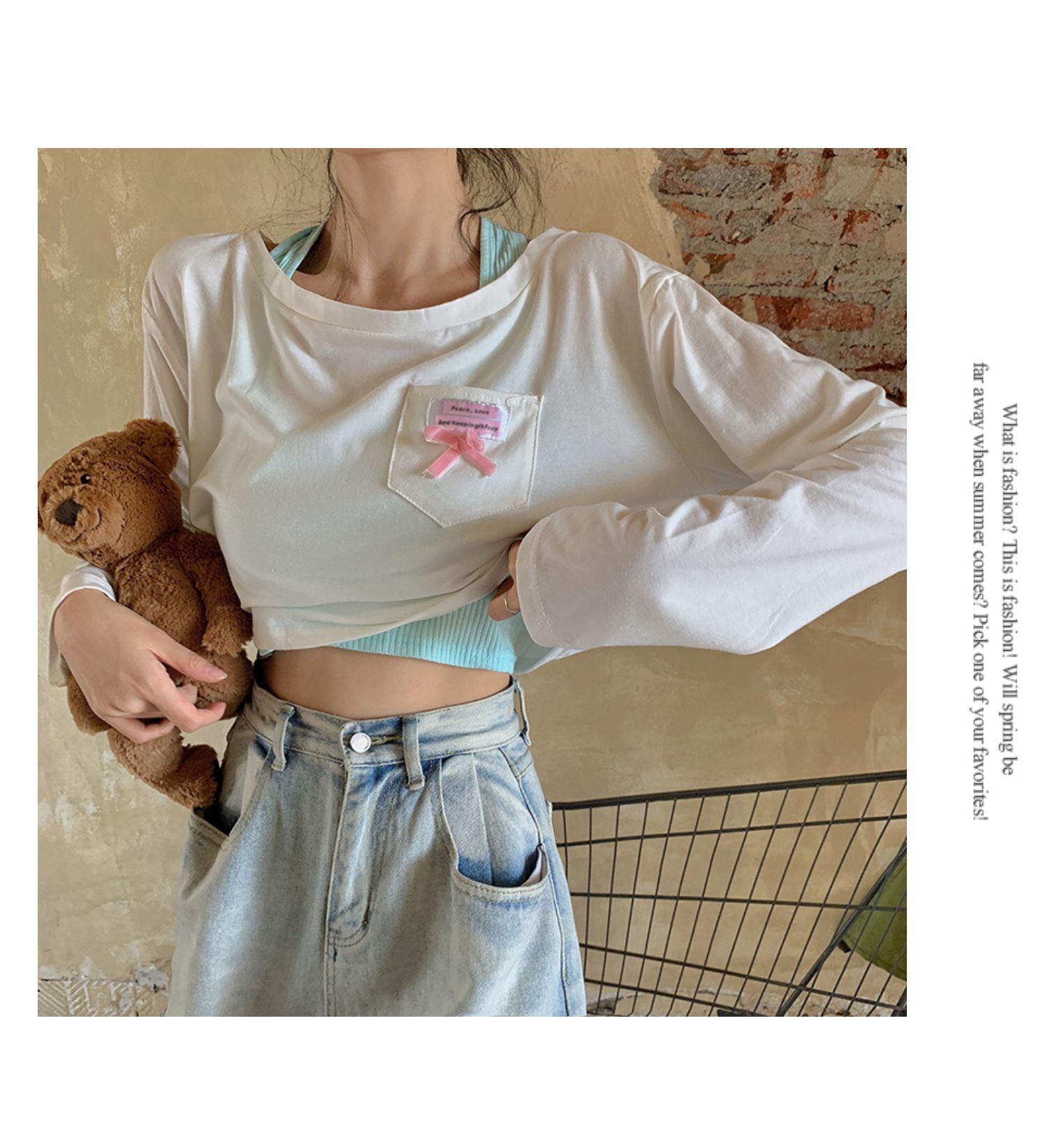 ルーズホワイトの日焼け止めTシャツのバージョン女性の秋の薄い長袖ボトミングシャツ2020新しいショートトップインタイド ブラックストロベリース70172006362