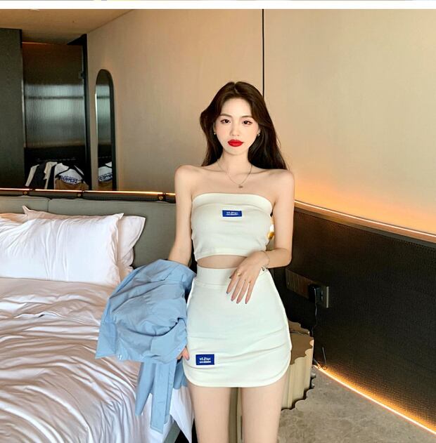 スーツファッションセクシーバッグヒップスカートスモールチューブトップツーピース女性2020年夏新作スタイル ブラックストロベリース57553284774