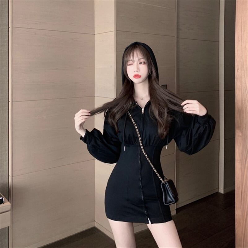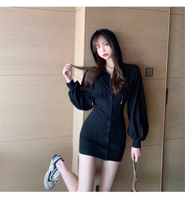 黒のフード付き長袖Tシャツドレス女性の夏のタイトなウエストバッグヒップスカート2020新しい気質スカート ブラックストロベリース14336307334