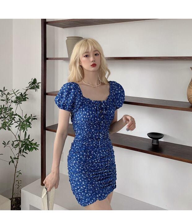 ブルーワンショルダーフローラルドレスレディースサマーバッグヒップスカート2020新気質ウエストスカート ブラックストロベリース85468788681