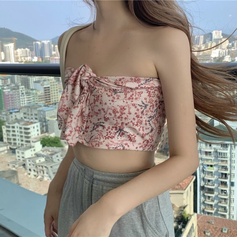 チューブトップレディースサマーギャザーストラップレスセクシーアンチグレアストラップレススモールベストアウターウェアラップチェストシンボトミングトップ ブラックストロベリース71543464937