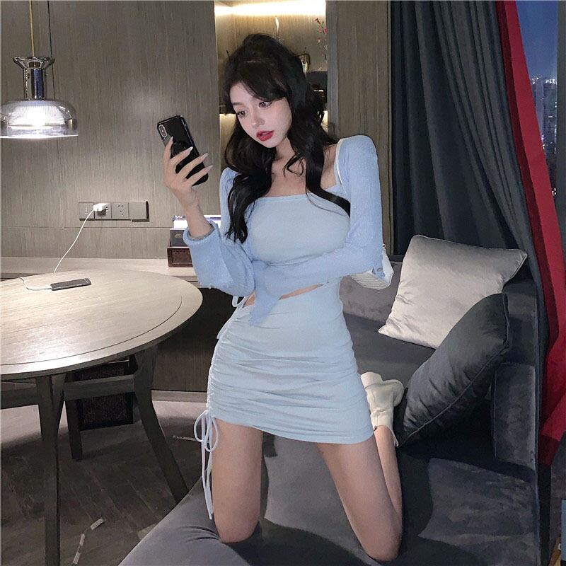 ドローストリングウエストストラップドレスレディース2020年夏新しいショートスカート気質ウエストバッグヒップスリムスカート ブラックストロベリース15601110926