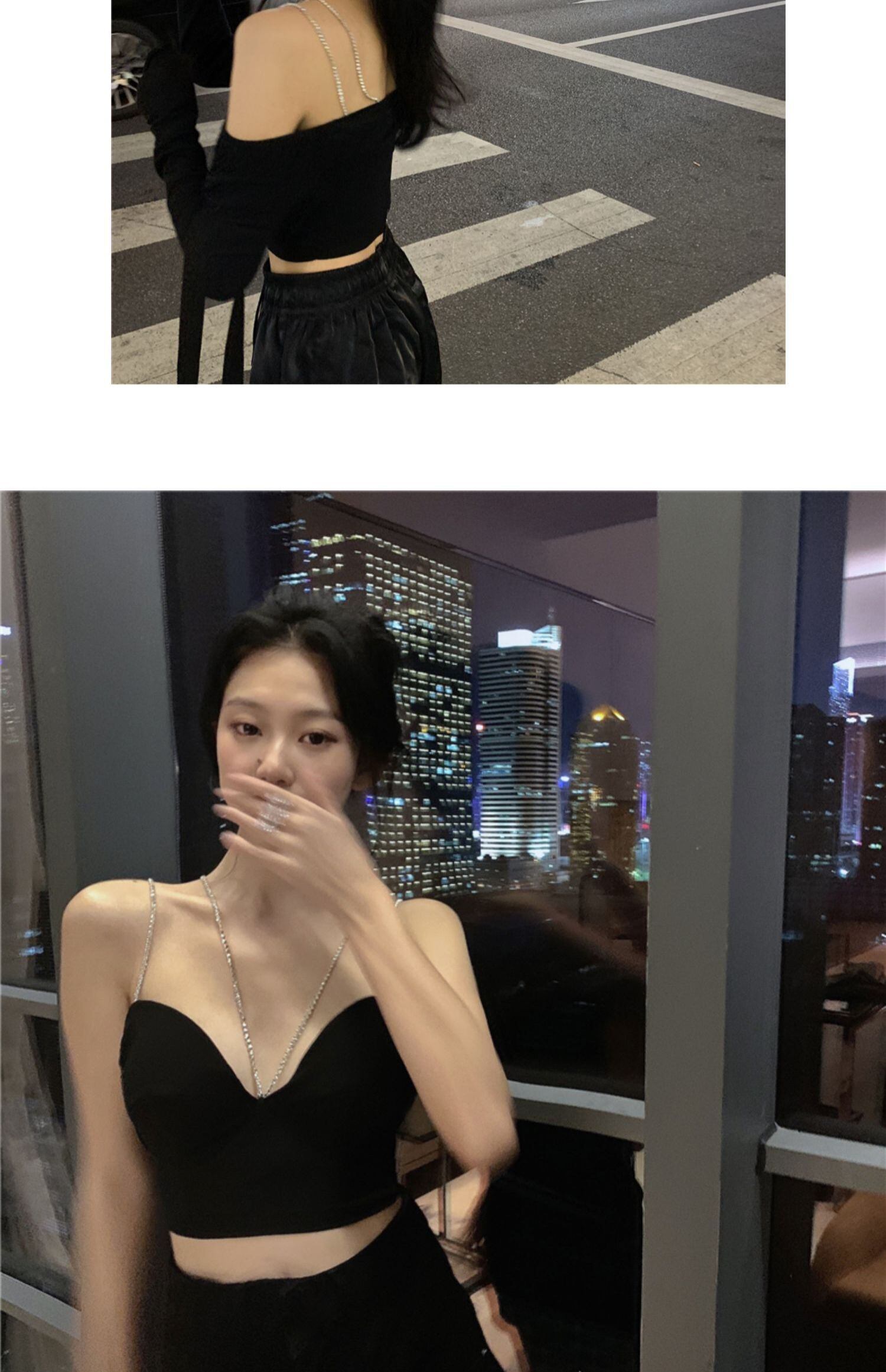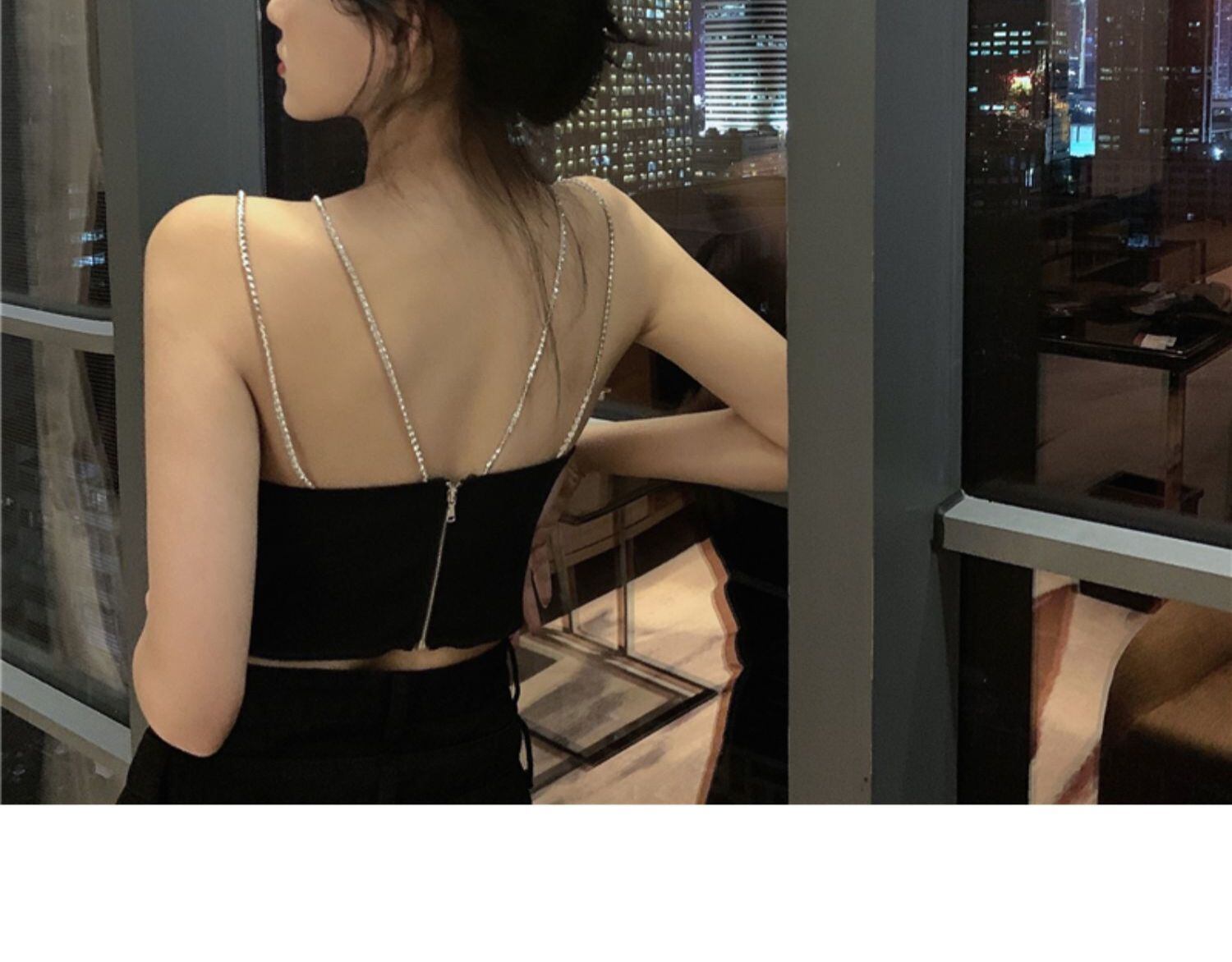 黒のセクシーなタイトフィットの小さなサスペンダー女性の夏のホルターノースリーブベストベースとスリムなショートトップアウターウェア ブラックストロベリース89503629467