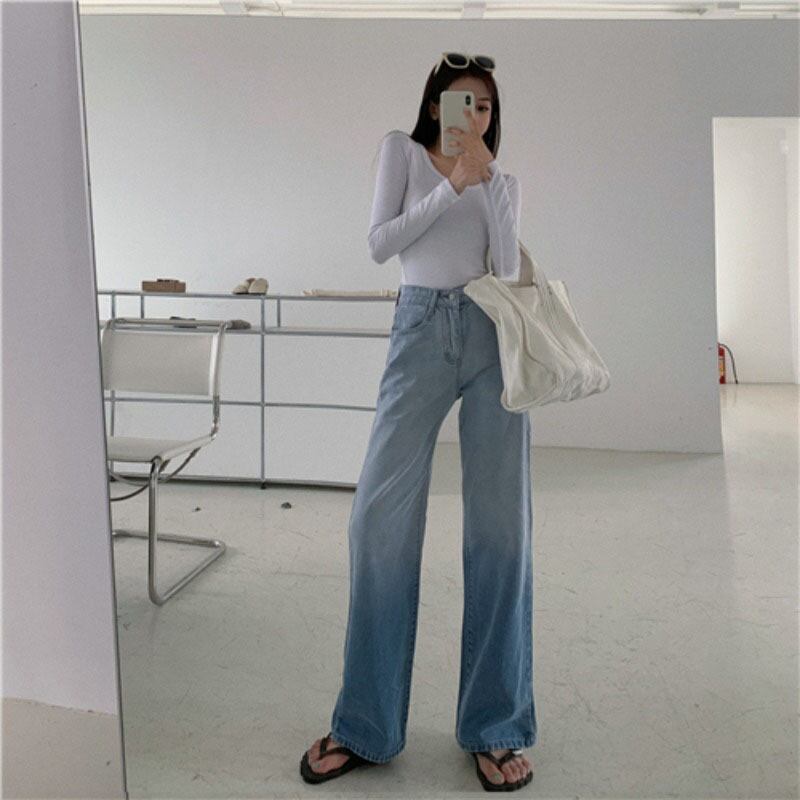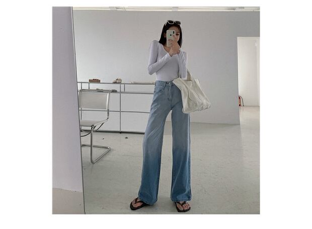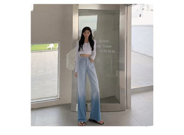 絞り染めブルーワイドレッグジーンズレディース秋モップハイウエストルーズストレートパンツ2020ニューパンツ ブラックストロベリース37820718489