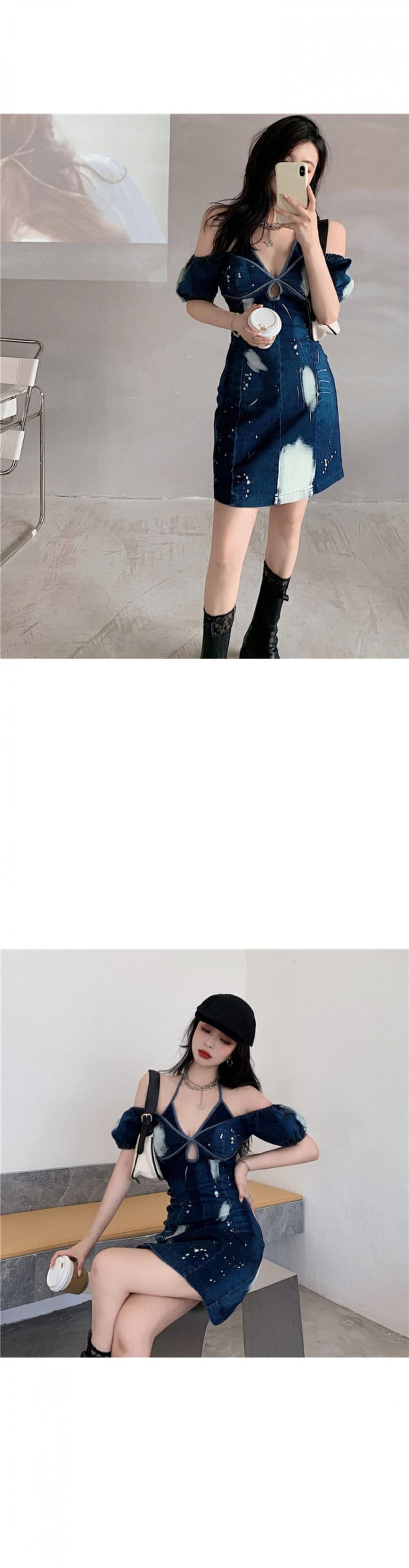 絞り染めデニムスリングドレス女性の2020年夏の新しいセクシーなバッグヒップスカート気質は薄いショートスカートでした ブラックストロベリース40443725452