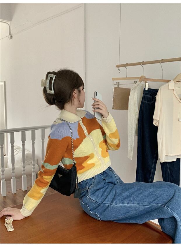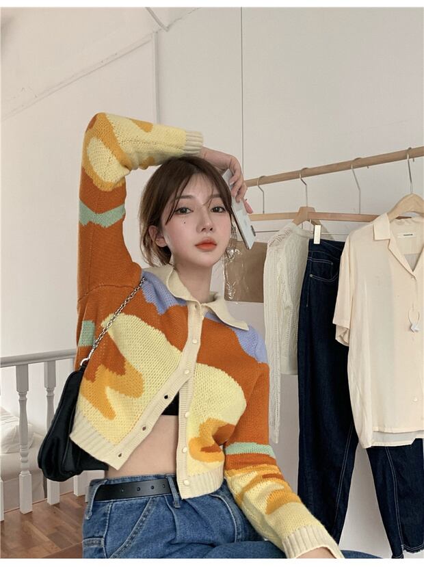 秋のコントラストカラー半袖ニットトップス女性2020新しいアイスシルクへそ小さなカーディガンと薄いセーター ブラックストロベリース39014763516