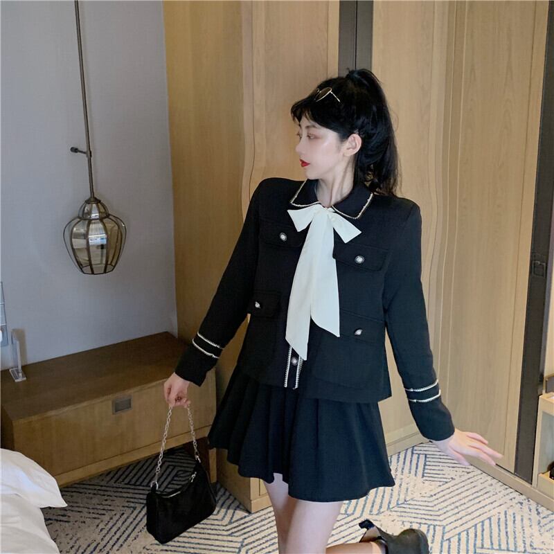 ボウノットスモールショートショートコートレディース2020年秋新作ルーズ長袖ブラックトップス ブラックストロベリース83640048778