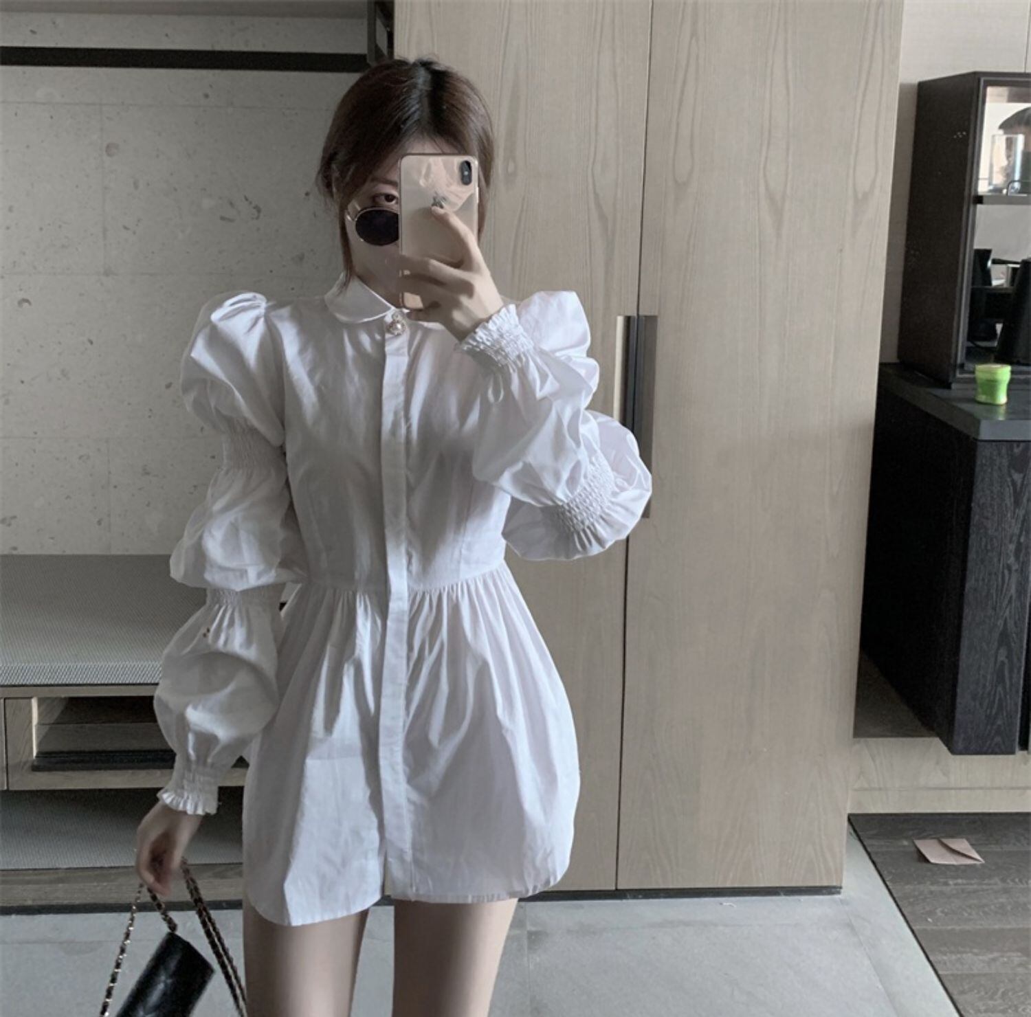香港スタイルのレトロなランタンスリーブホワイトシャツレディース秋の長袖シャツ2020新しいデザインセンスニッチトップ ブラックストロベリース84233495115