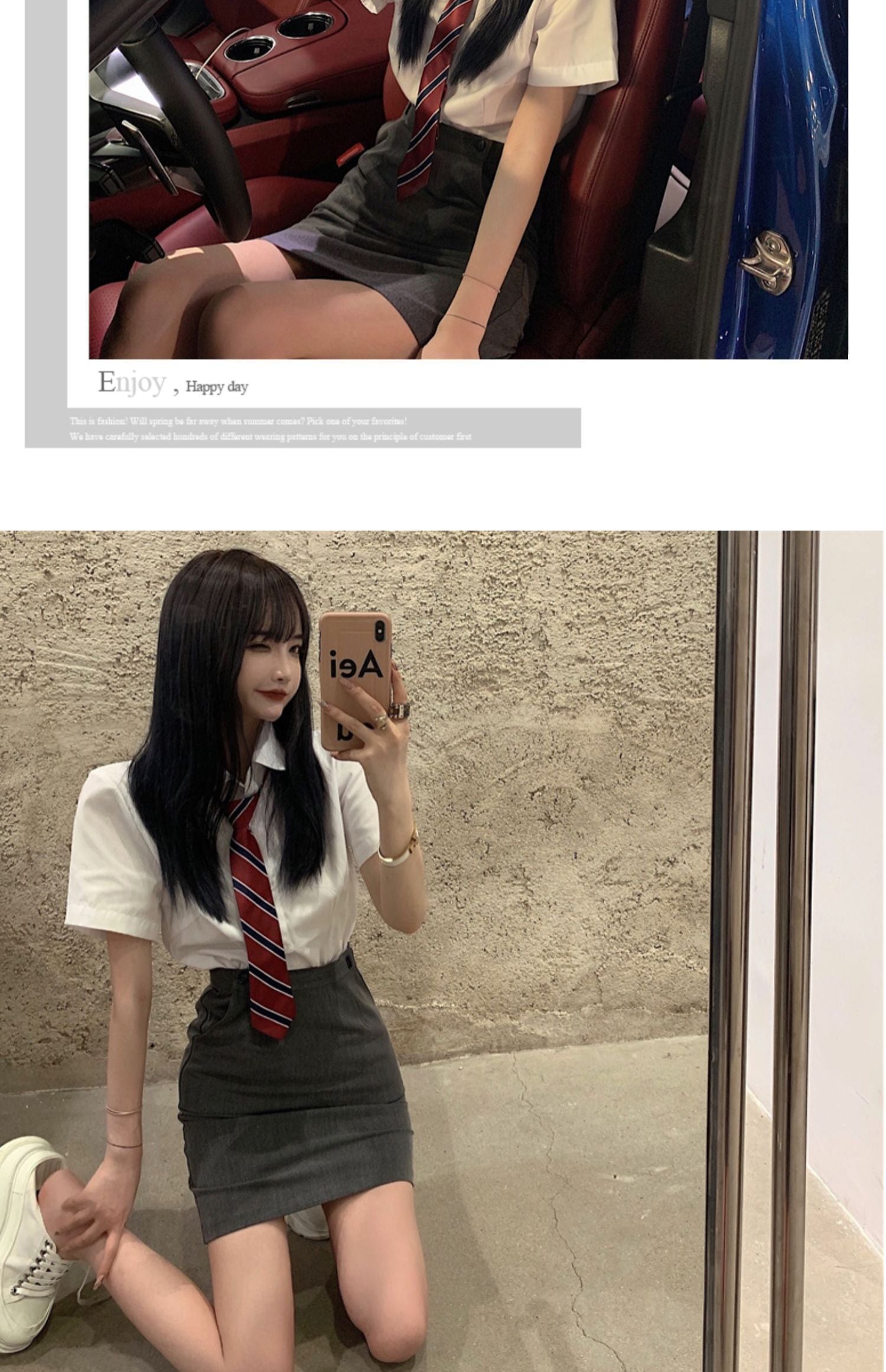 スタイルjkホワイトポロシャツ女性夏ネクタイ半袖シャツ2020新しいニッチショートトップ ブラックストロベリース19707542333