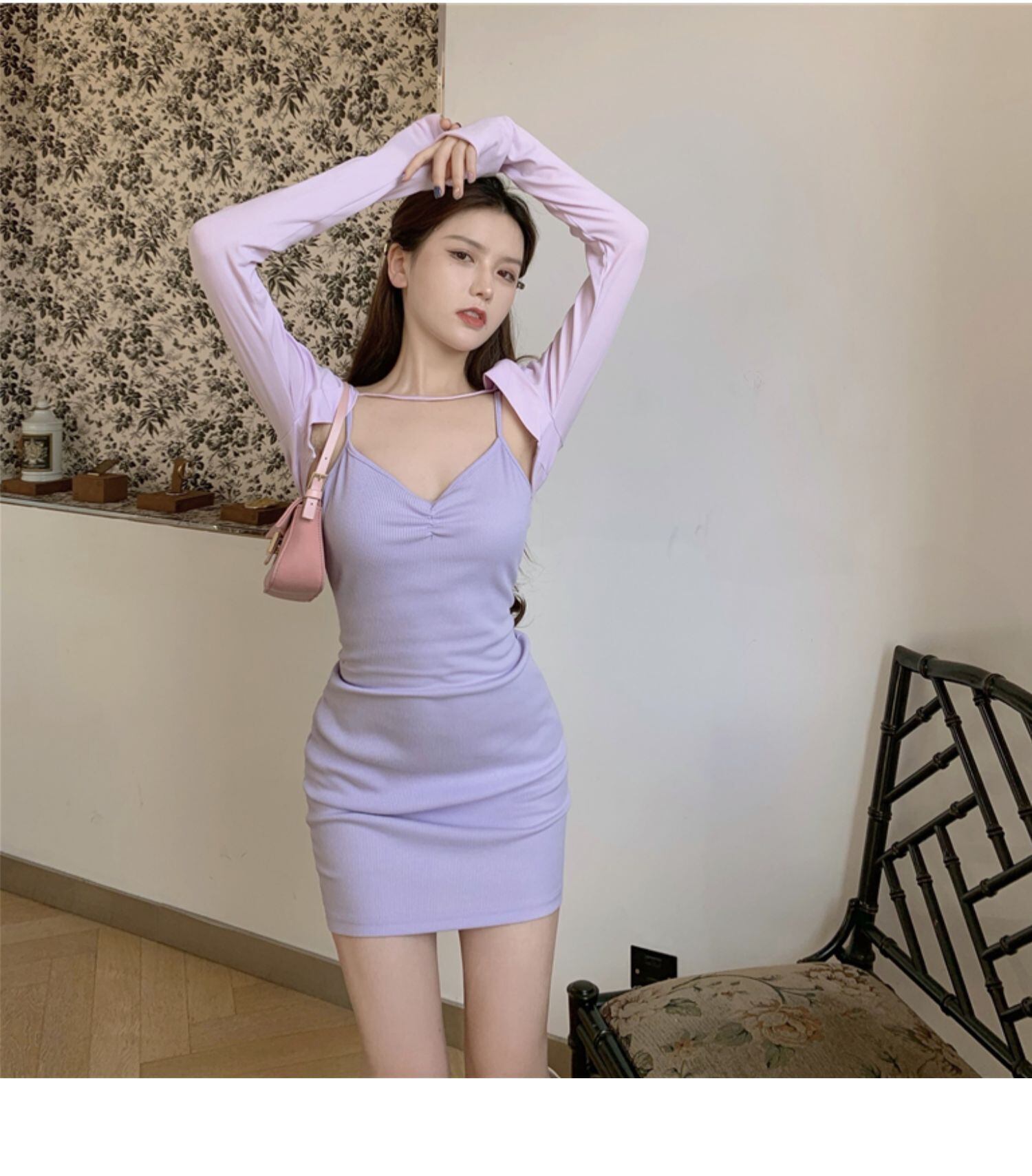 パープルニットスリングプリーツドレスレディース初秋セクシータイトフィットヒップスカート2020新気質スカート ブラックストロベリース81980089757