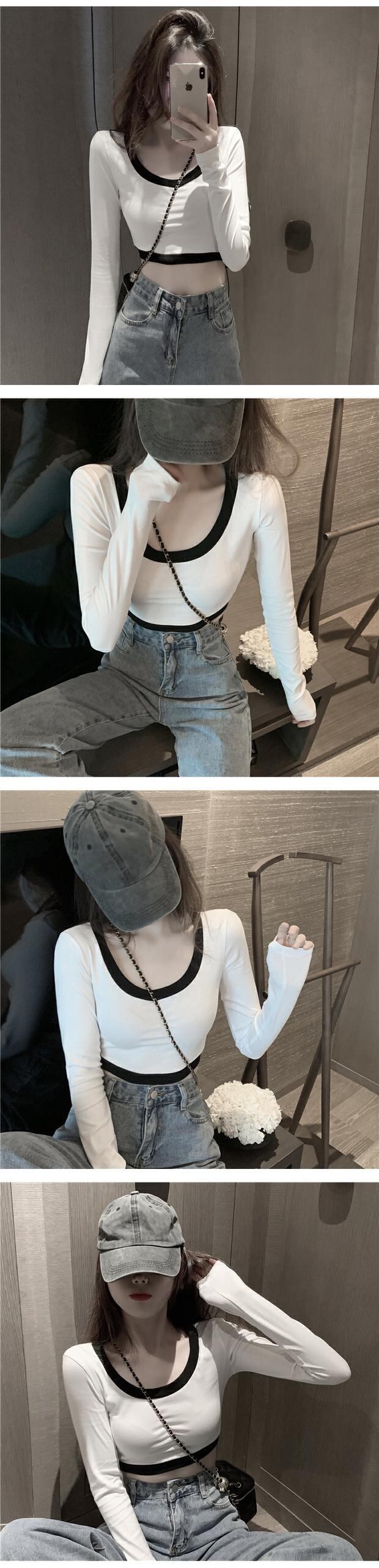 対照的なショートクロップドへそセクシーなタイトフィットTシャツ女性の2020年初秋新しい長袖インナーボトミングシャツブラックトップ ブラックストロベリース36981439128