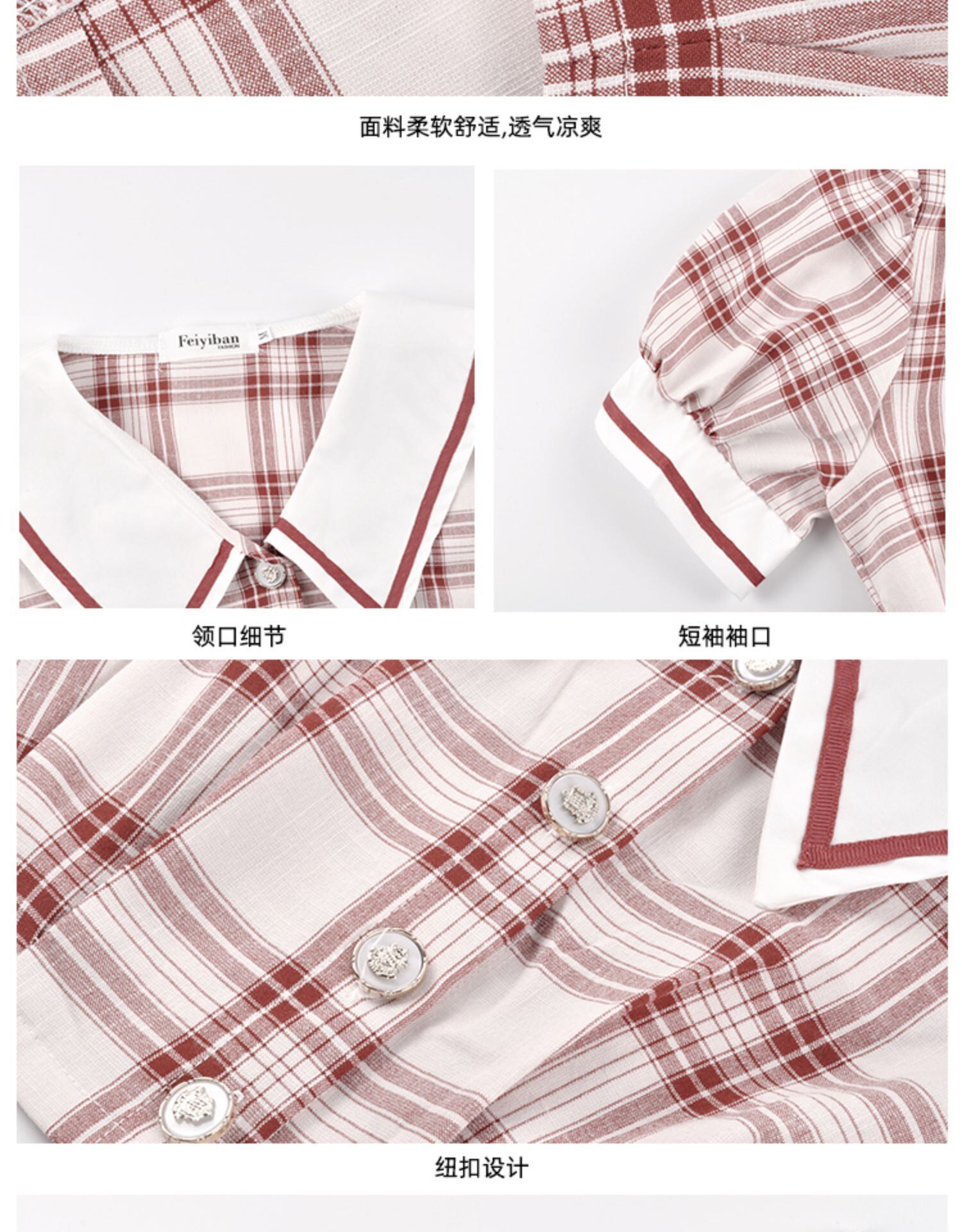 スタイル年齢を減らす小さな男のスーツ2020新しい女性の夏のプリーツスカートチェック柄トップツーピーススーツ ブラックストロベリース54212158269