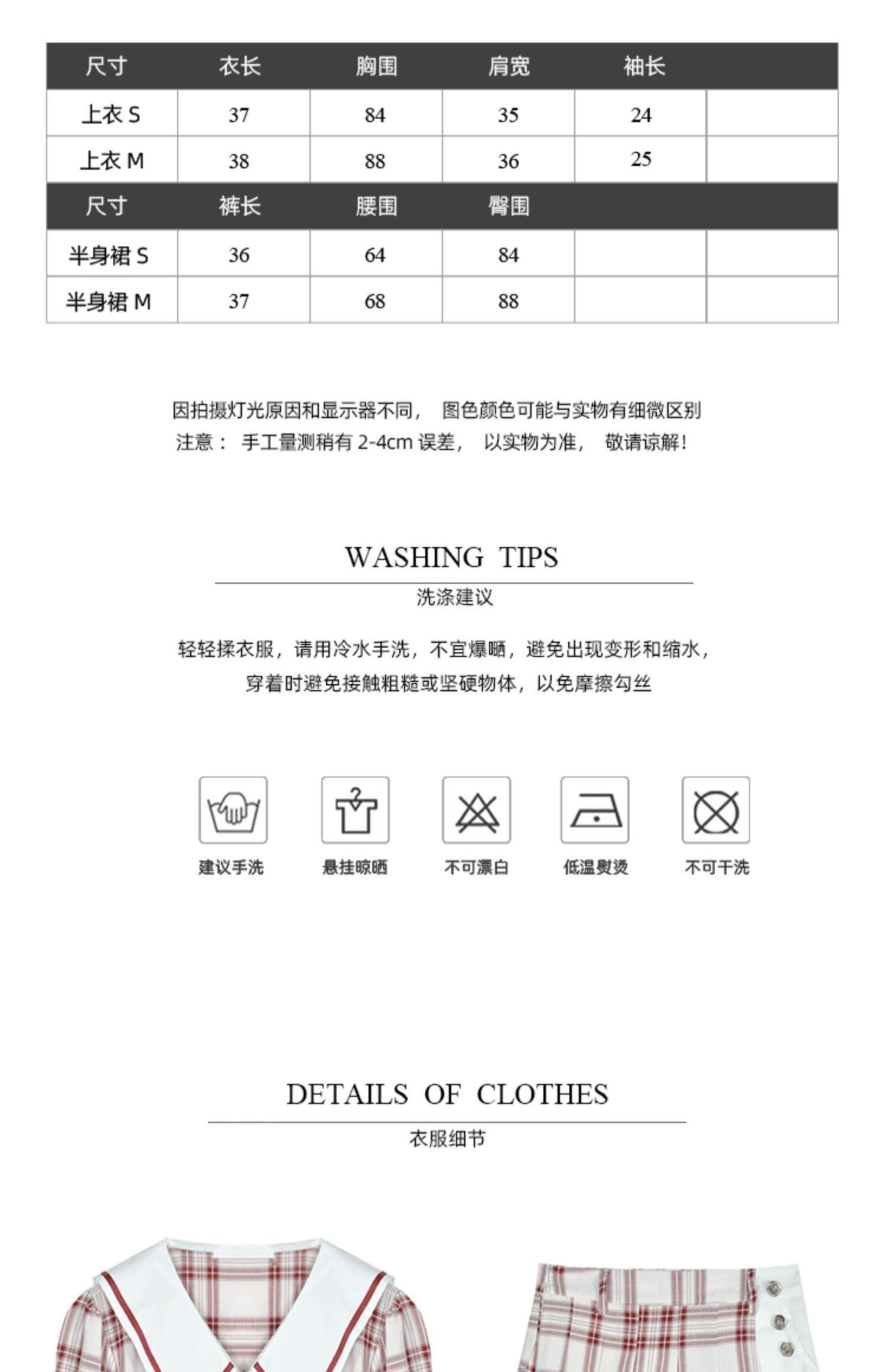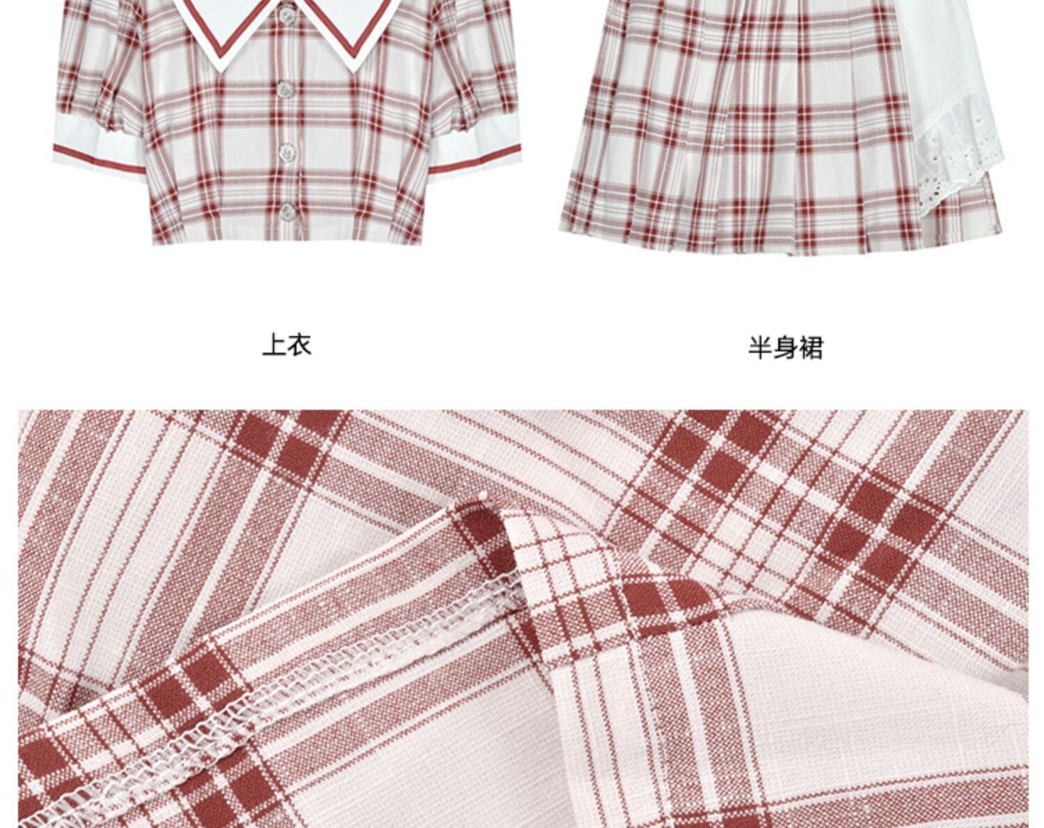 色:赤チェックトップ,レッドチェックスカート,ホワイトトップ,白いスカート