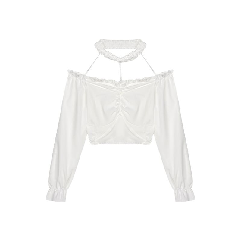センスハンギングネックホワイトシャツレディース秋注意マシンセクシーストラップレス長袖シャツショートニッチトップ ブラックストロベリース91838628015