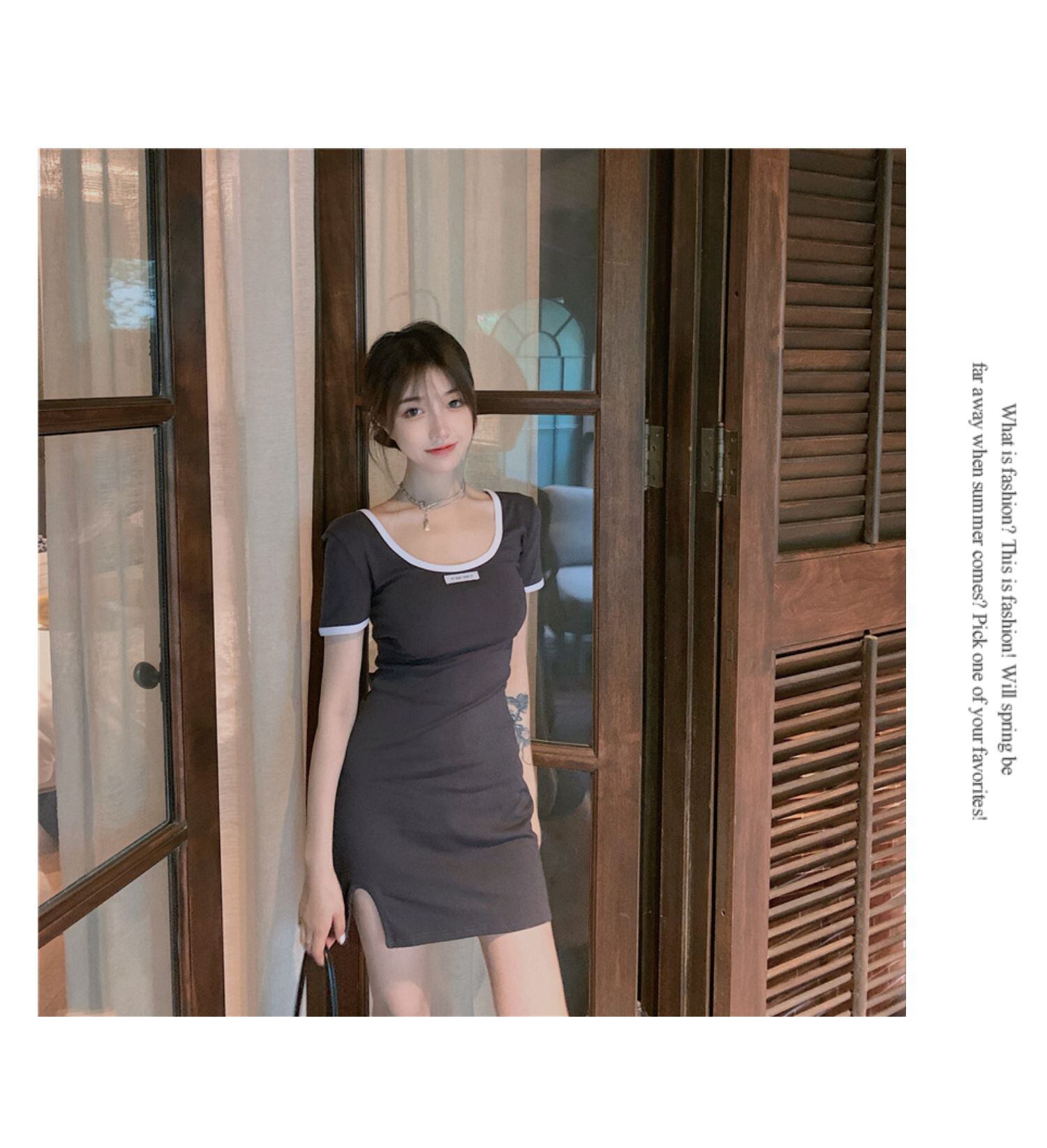 レトロなオープンバックグレーのドレス女性の夏のセクシーなタイトフィットヒップスカート2020新しいスリット気質スカート ブラックストロベリース5719388609