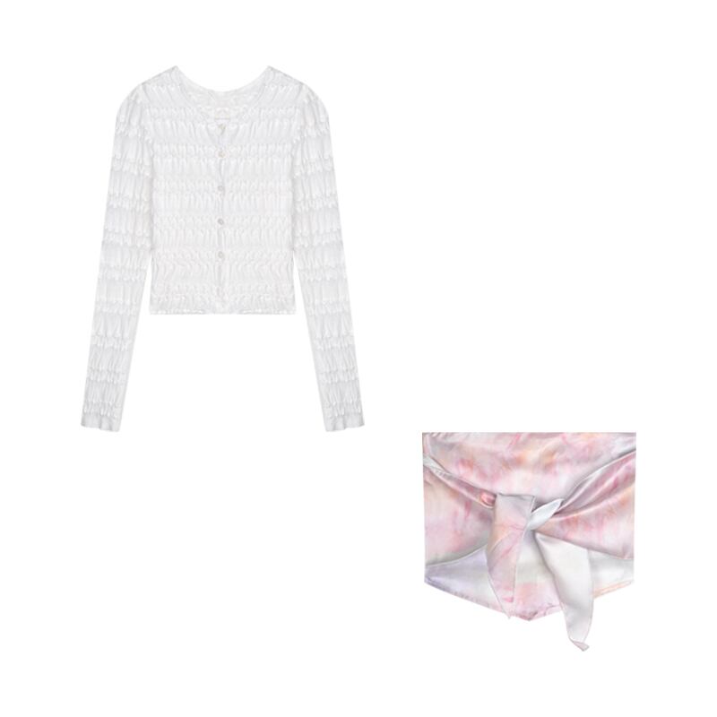 ホワイトレースシャツレディース初秋スリム長袖シフォンスモールカーディガンジャケット2020ニューアウターショートトップ ブラックストロベリース23557600873