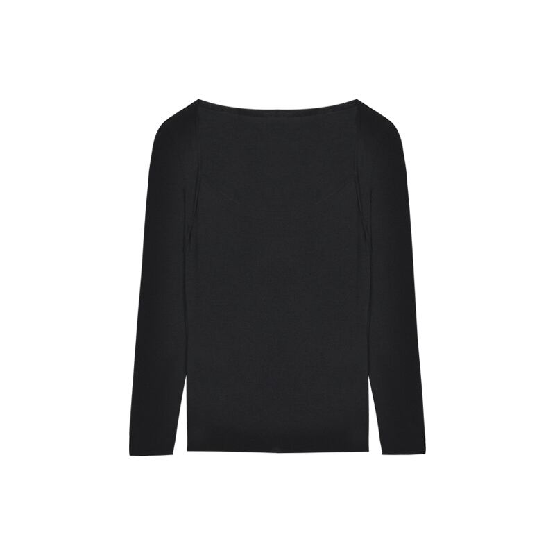ハンギングネックスクエアカラーホワイト長袖Tシャツレディース初秋丁寧なマシンタイトフィットデザインセンスボトミングシャツトップイン潮 ブラックストロベリース93864433682