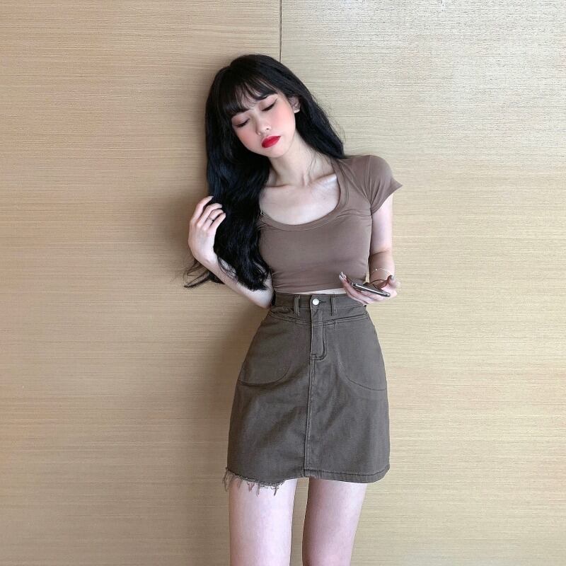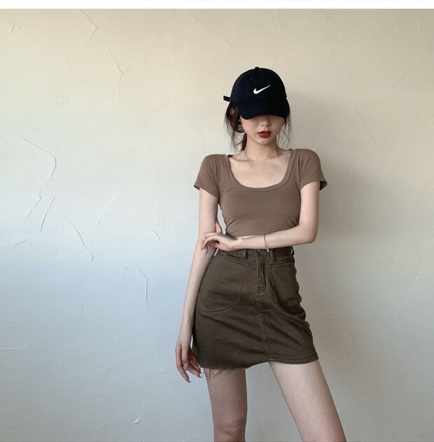 レトロブラウンハイウエストスカート女性夏セクシータイトaラインバッグヒップスカート2020新気質スカート ブラックストロベリース51756895543
