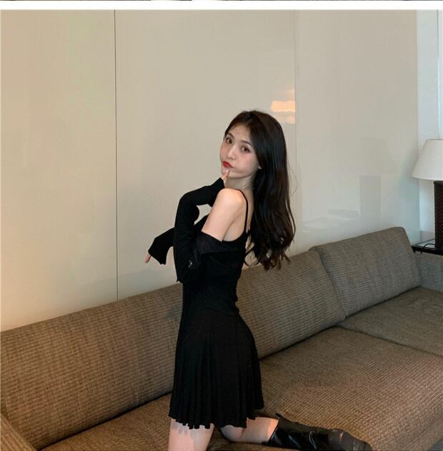セクシーなチューブトップオフショルダーストラップスカートドレス女性の夏のaラインショートスカート小さな灰色の気質ウエストスカート ブラックストロベリース47541138422