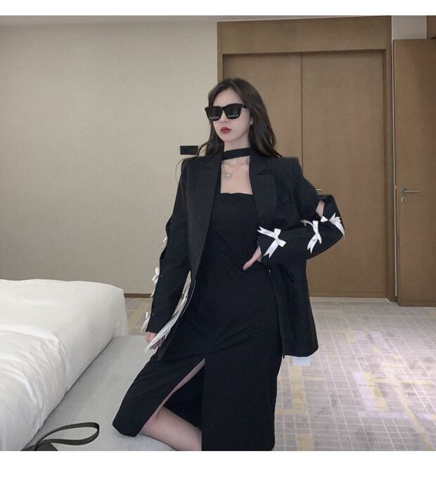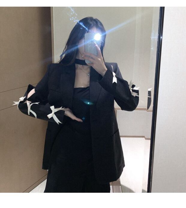 ボウノットブラックフライドストリートスモールスーツジャケット女性秋バージョンルーズシンスーツ2020ニュートップ ブラックストロベリース18786586462