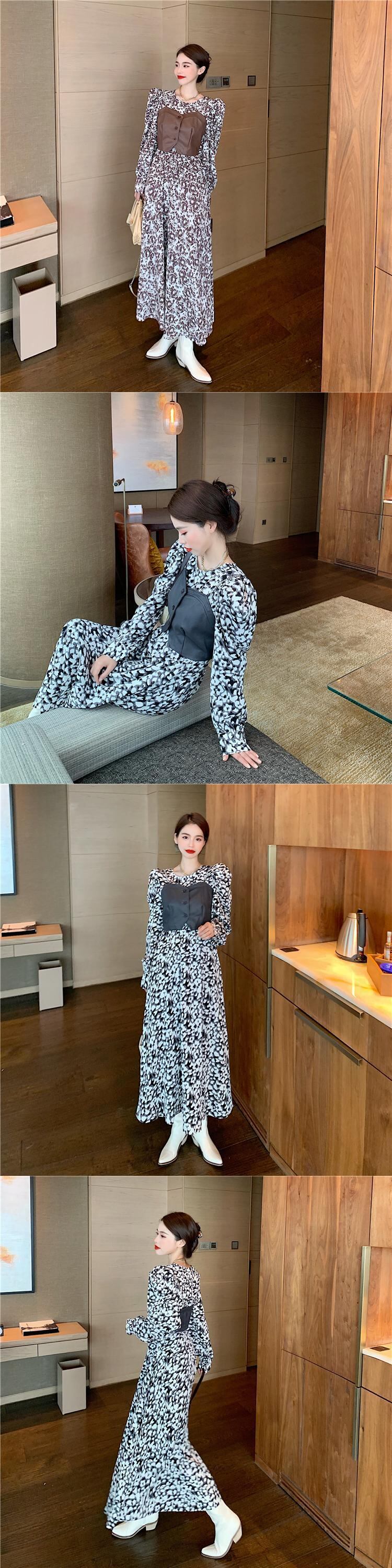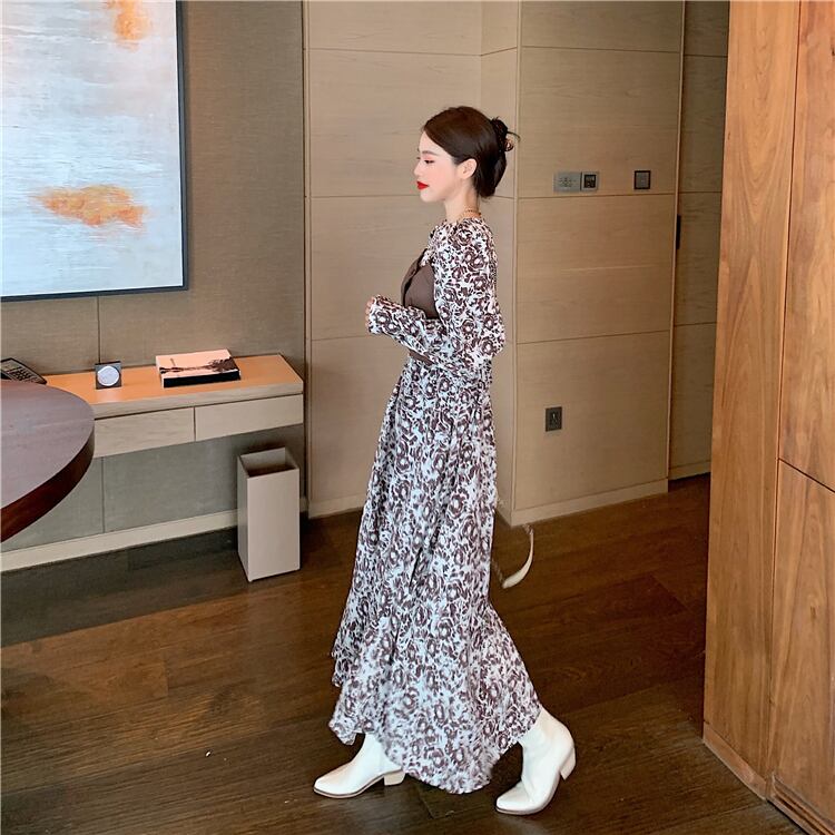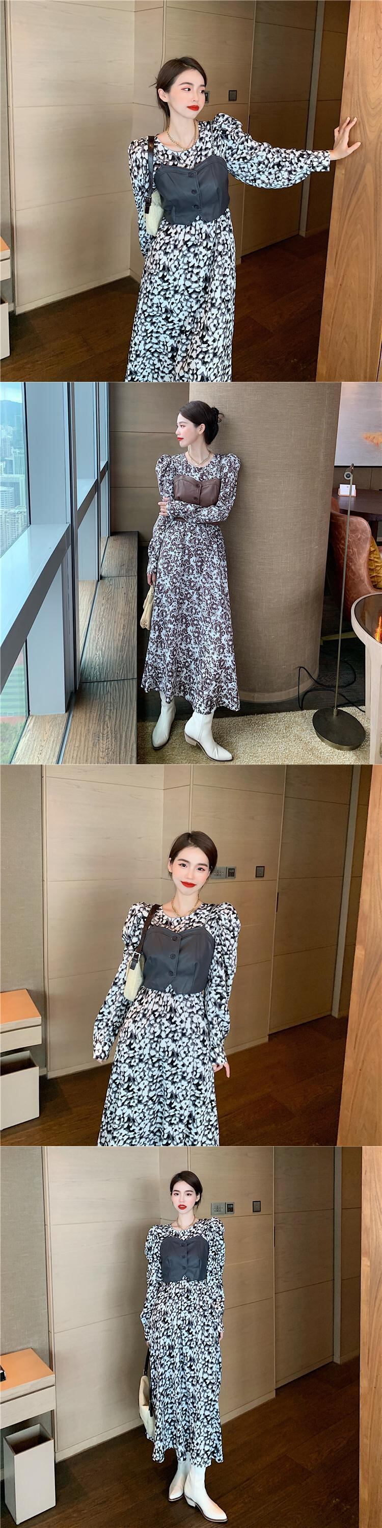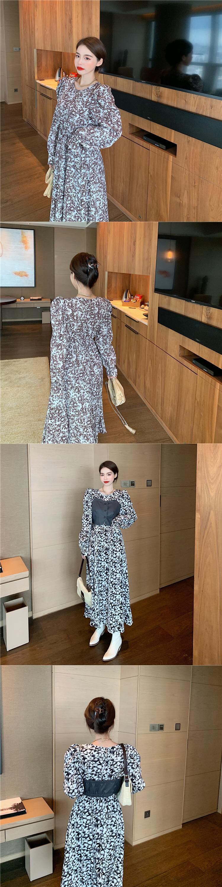 フランスのニッチなレトロな黒の花柄のドレス女性の秋の長袖ミディスカート2020新しい気質のスカート ブラックストロベリース41295973281
