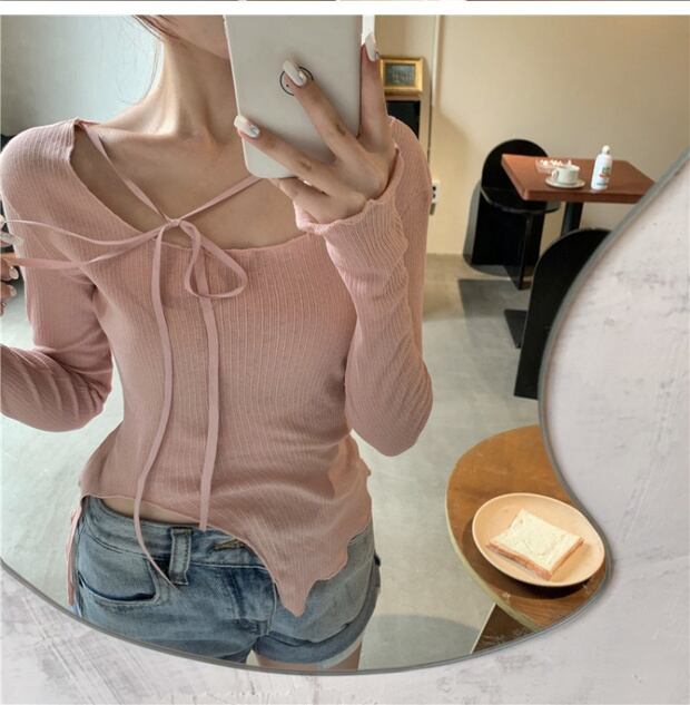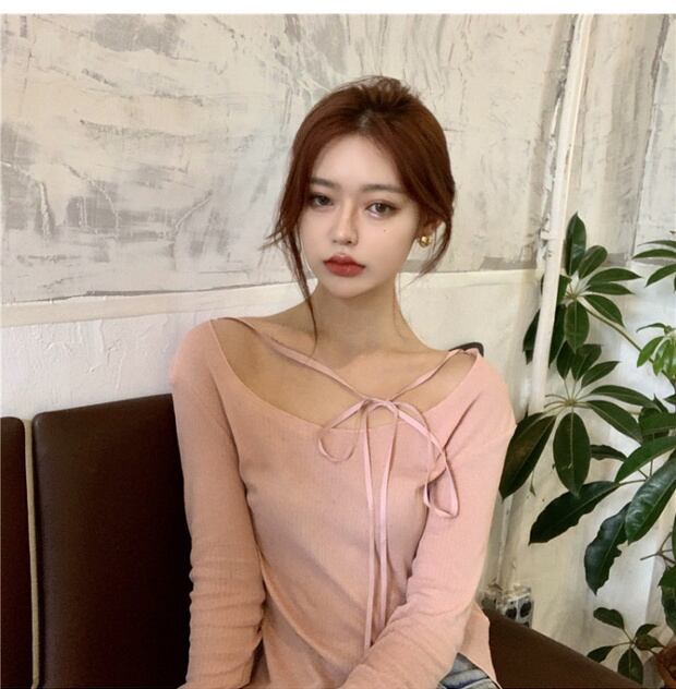 ピンクのワンショルダーTシャツレディース初秋の長袖丁寧なマシンセクシーなストラップレスボトミングシャツ2020新しいトップイン潮 ブラックストロベリース18574501976