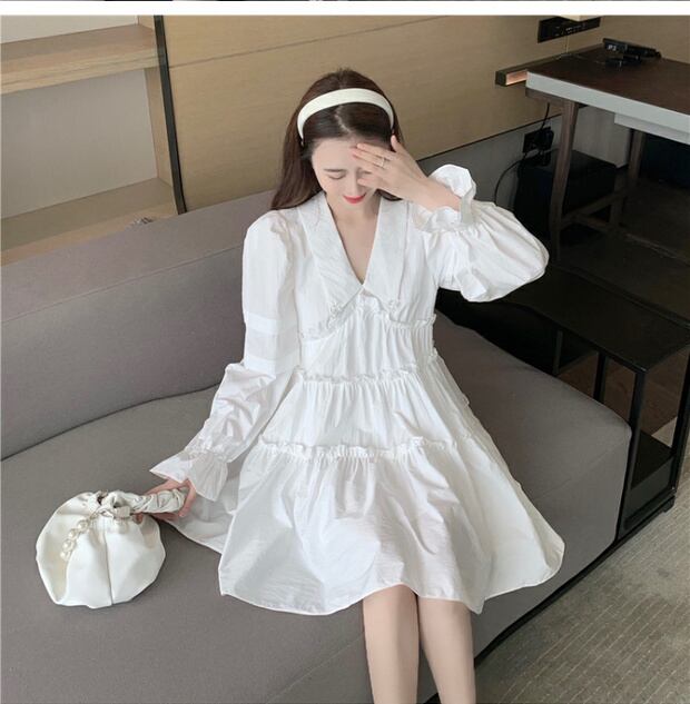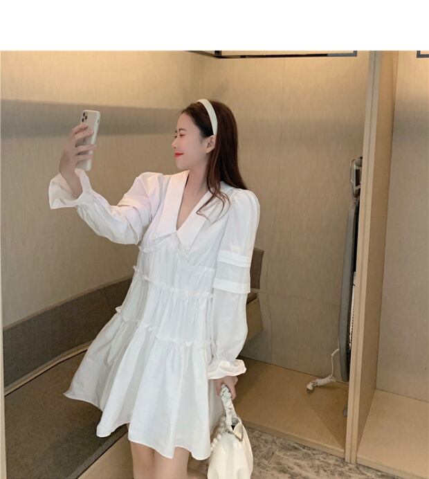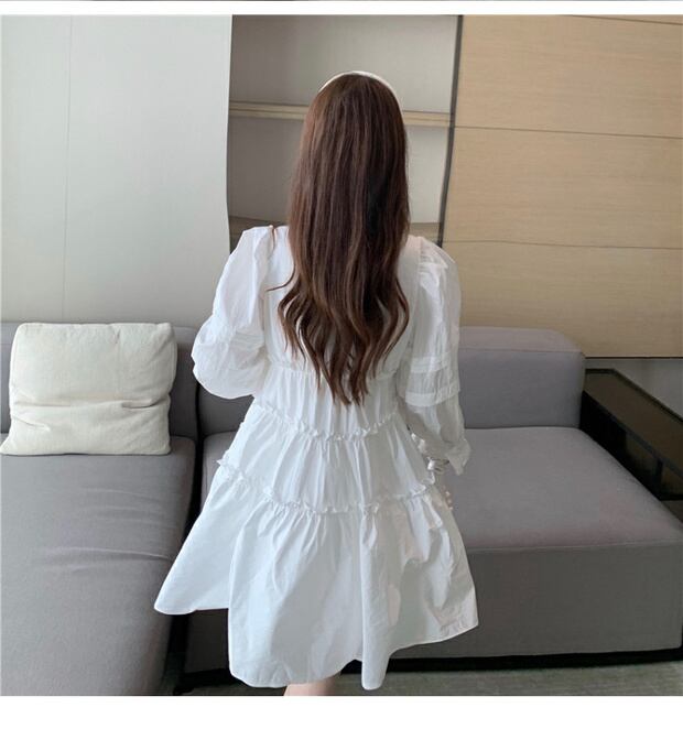 ドールカラーフレンチホワイトシャツドレス秋の長袖プリンセスショートスカート2020新しい妖精気質スカート ブラックストロベリース83558565787