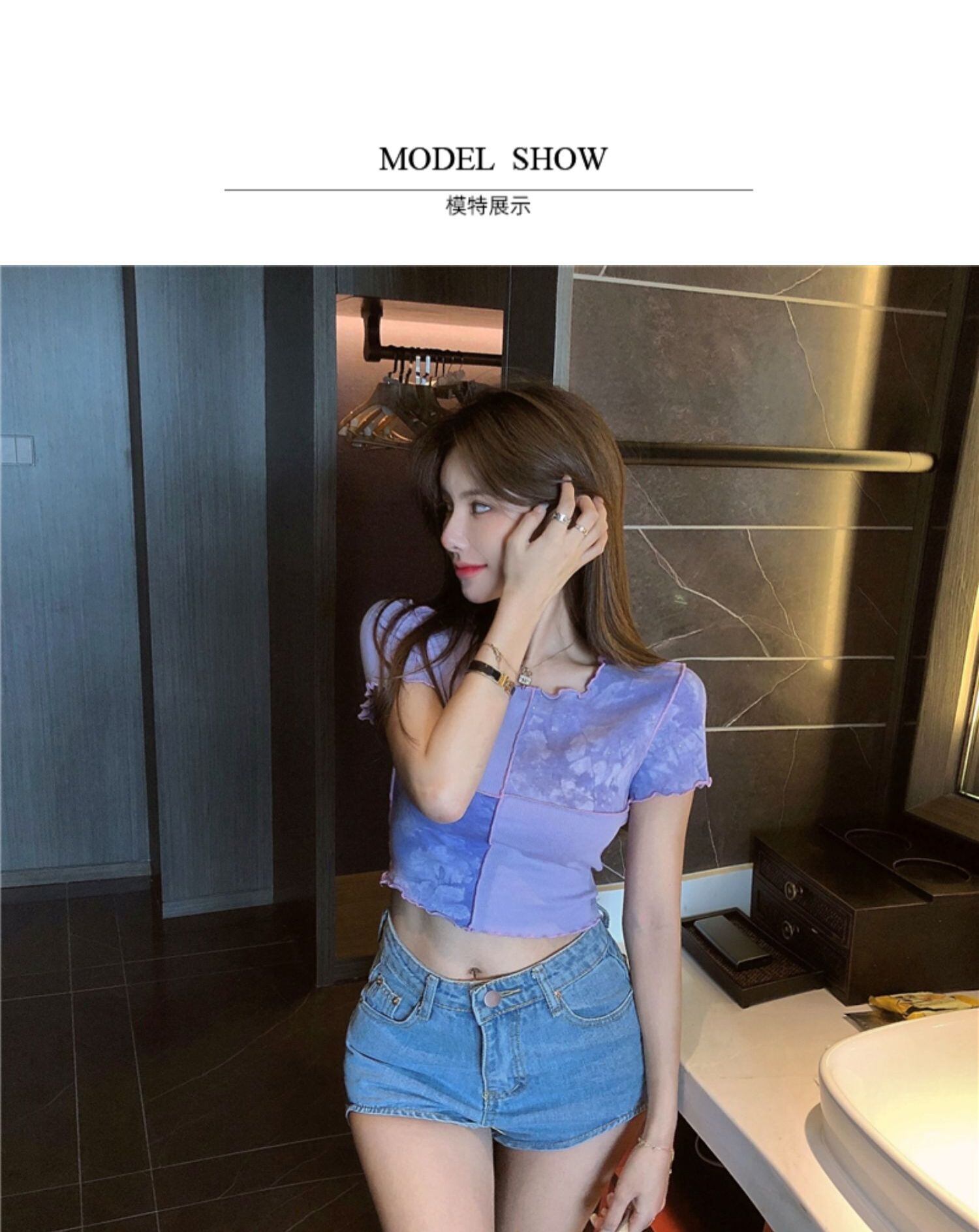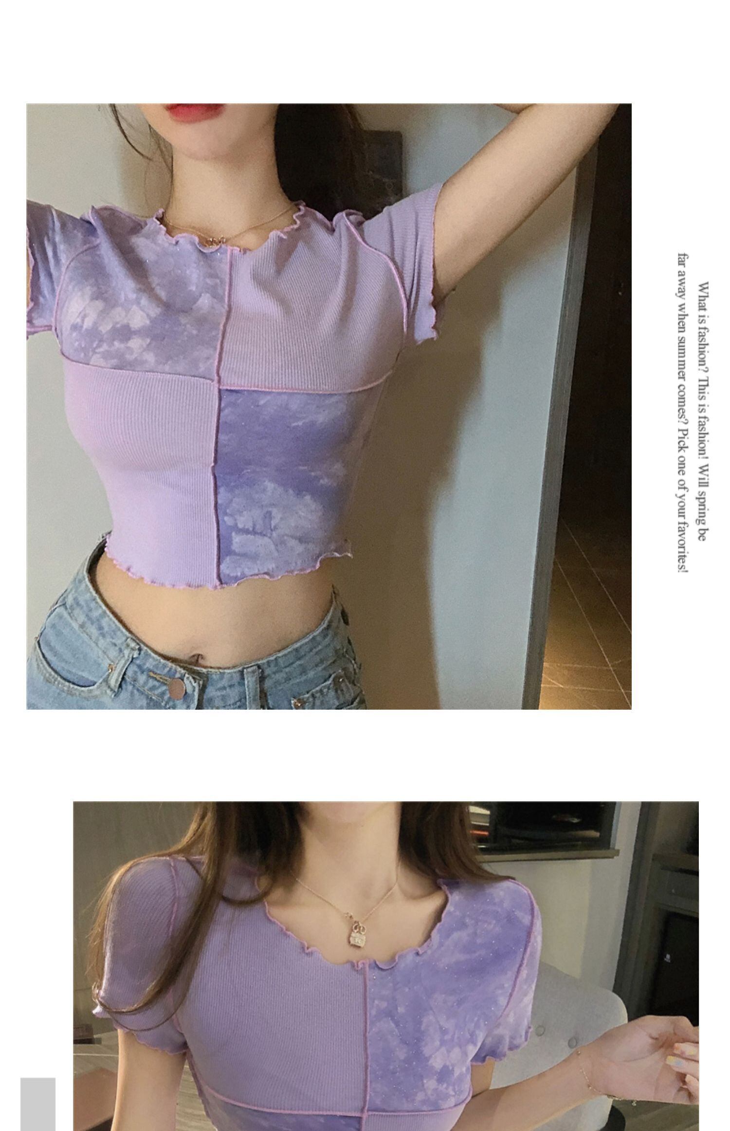 パープルパーソナリティ絞り染めチェック柄ショートTシャツレディースサマースリム半袖2020ニューデザインセンスニッチトップ ブラックストロベリース79171616465