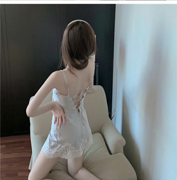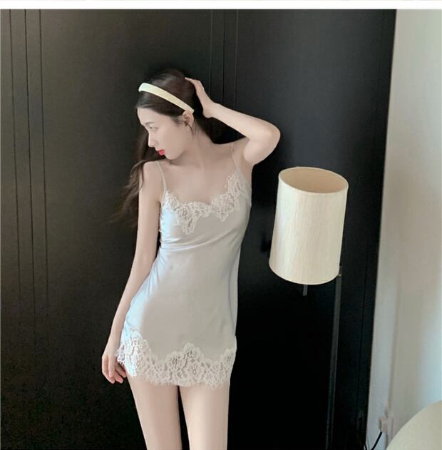 グレーのレーススリングドレス女性の夏のセクシーなタイトフィットヒップパジャマショートスカート気質ウエストオープンバックスカート ブラックストロベリース63782263708