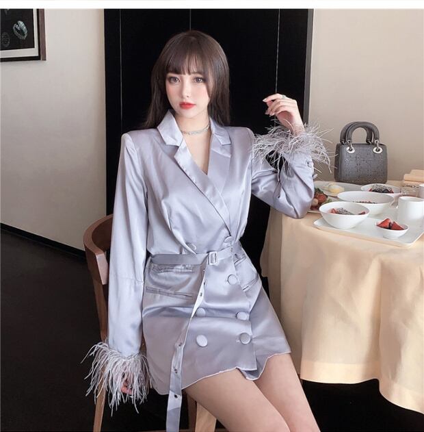 サテングレーフライドストリートスモールスーツレディース初秋ルーズカジュアルスーツデザインセンスのミドル丈ジャケット ブラックストロベリース20565932098