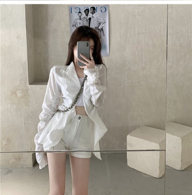 ルーズブラックフライドストリートスモールスーツジャケット女性秋薄ミドル丈カジュアルスーツデザイントップス ブラックストロベリース95495809635