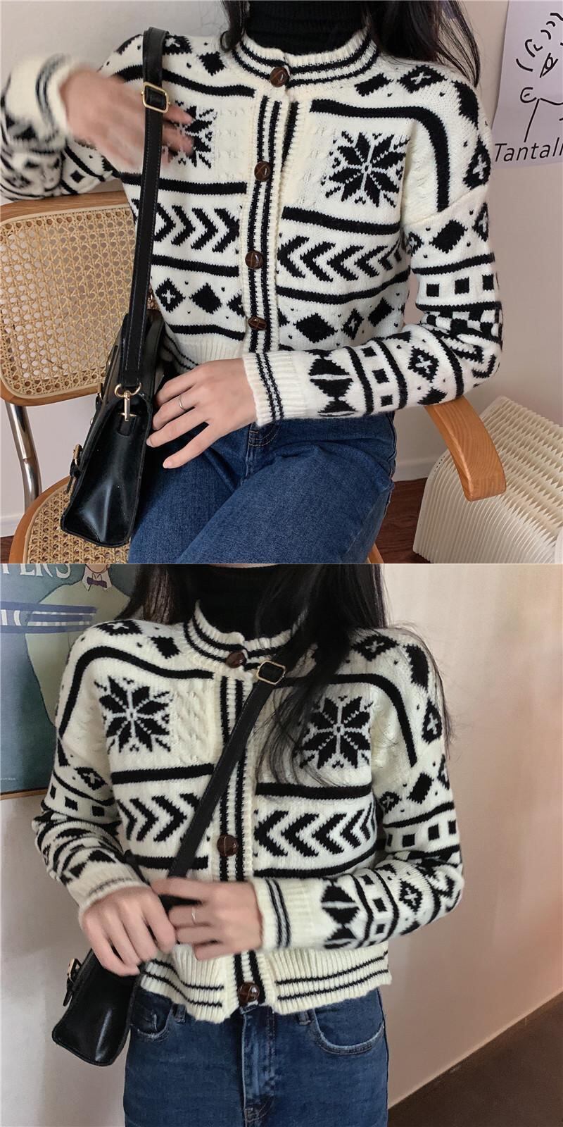 レトロジャカードショートニットカーディガンレディース秋ニュースタイルブラックルーズレイジー長袖セーターコート ブラックストロベリース39910613558