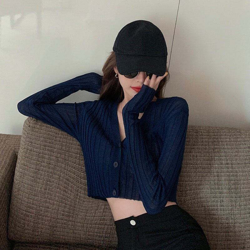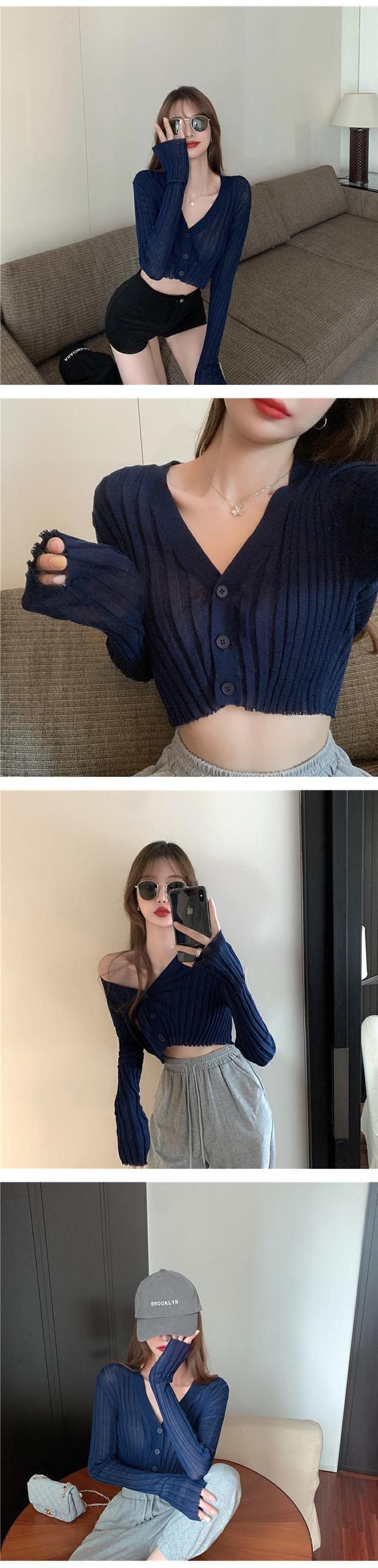 ストライプVネックショート長袖ニットカーディガンジャケットレディース2020年初秋新作アウターシンブラックトップス ブラックストロベリース64471324578