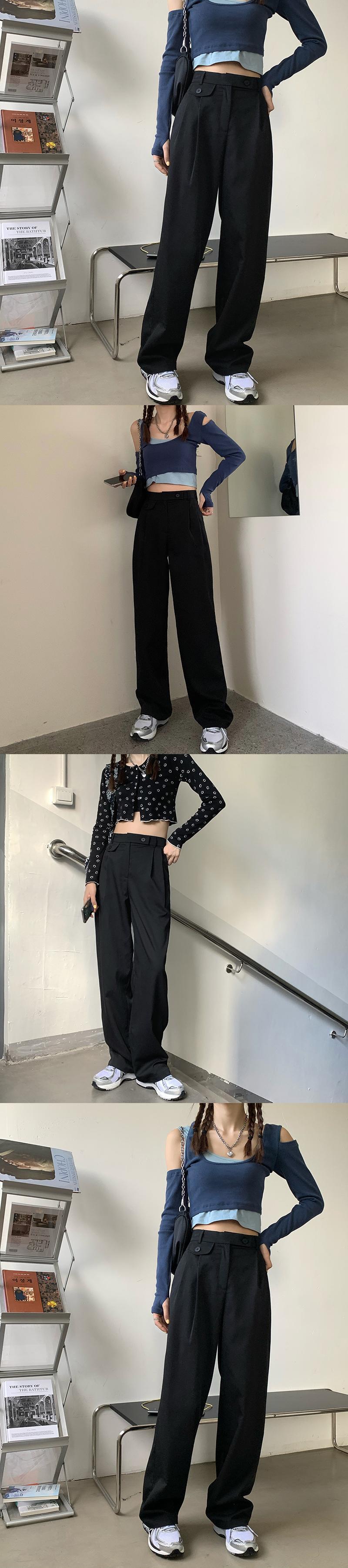 ドレープオールマッチカジュアルスーツパンツレディース秋新作ハイウエストルーズワイドレッグパンツグレーストレートモップパンツ ブラックストロベリース64518883500