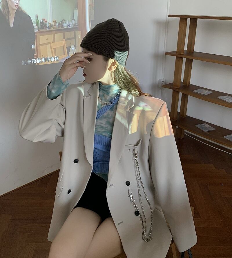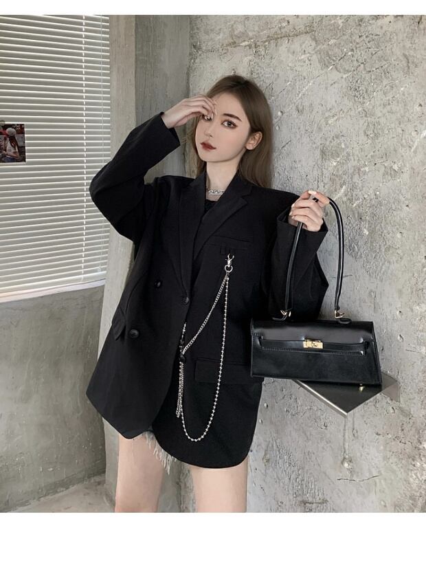 ショルダーパッドブラックスモールスーツレディース初秋ルーズネットレッドチェーンスーツ2020新しいカジュアルジャケットジャケット ブラックストロベリース4433550406