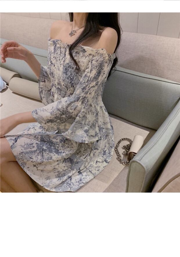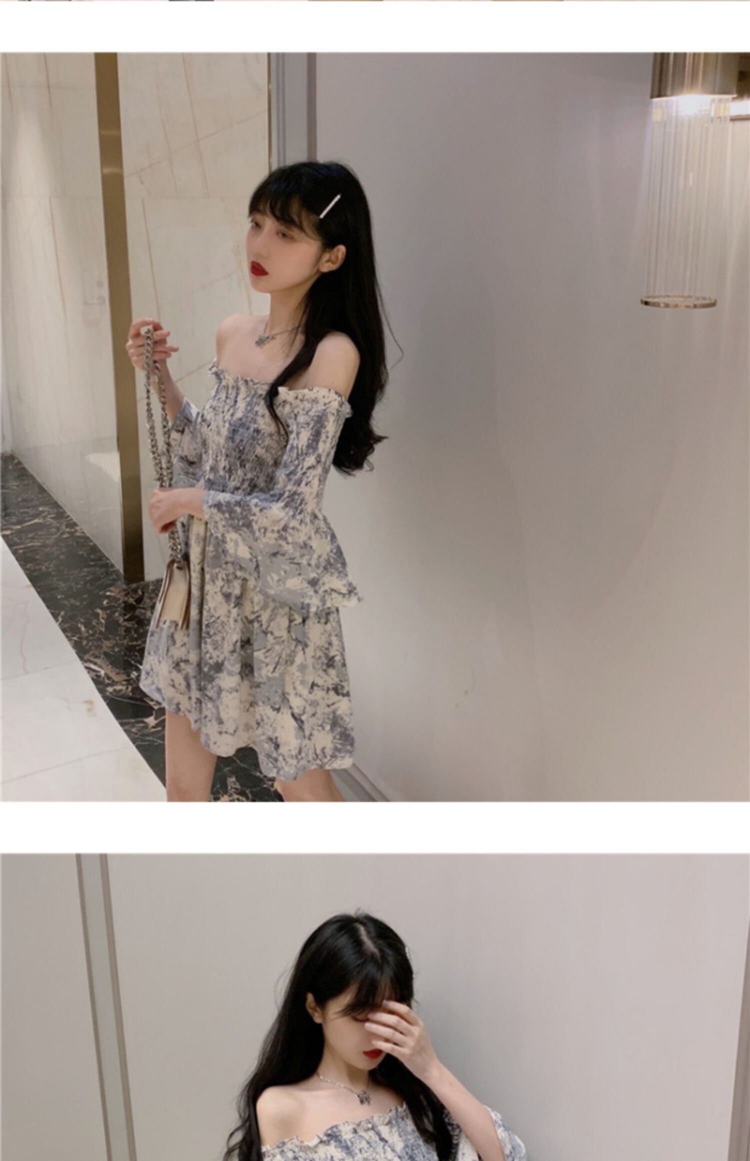 フランスのニッチな花柄ドレス女性の初秋のストラップレス長袖ショートスカート2020新しい気質ウエストベルフラワースカート ブラックストロベリース10366058990