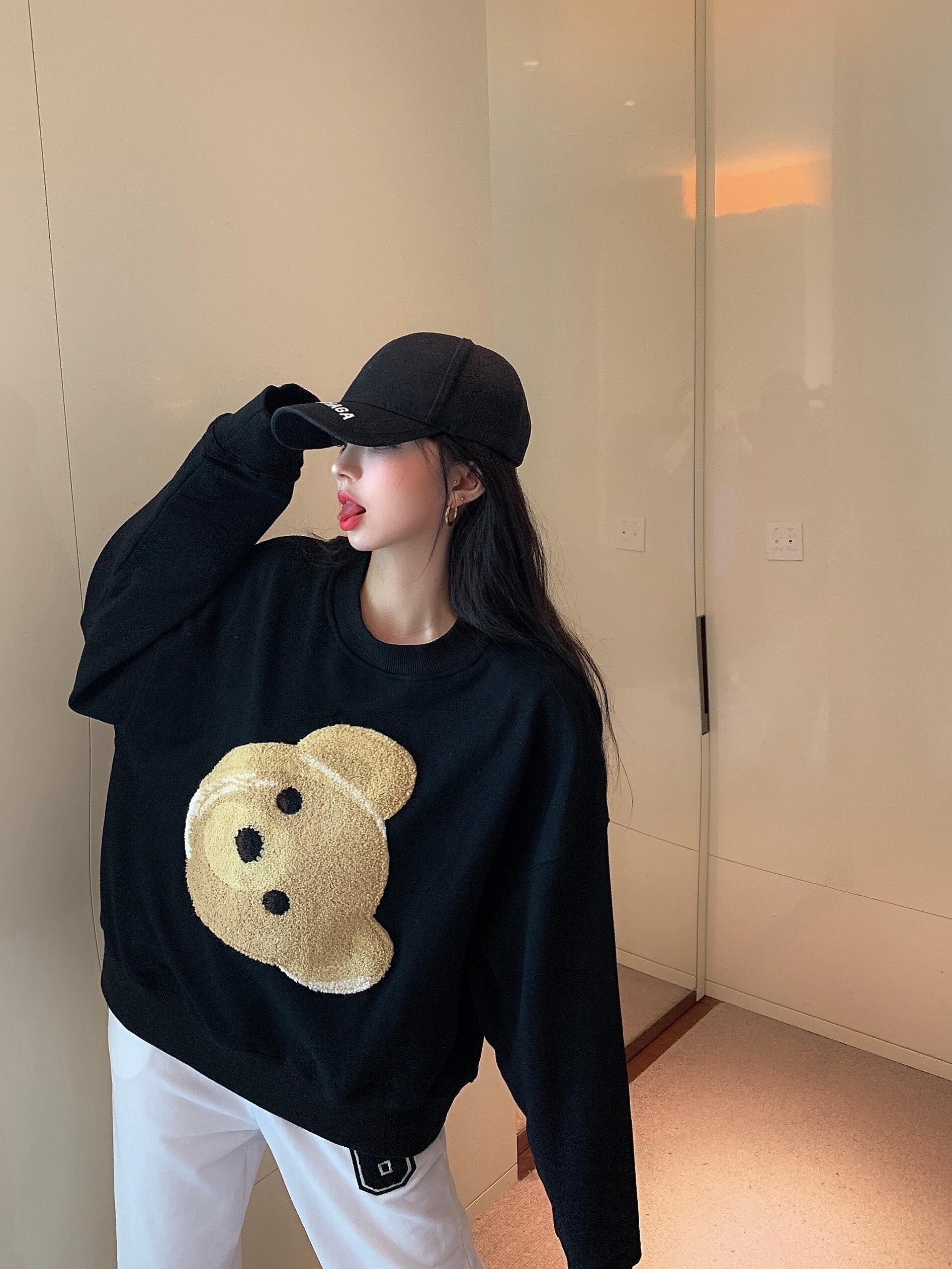 ベアブラック長袖セーター女性秋怠惰なルーズプルオーバージャケット2020新しいトップイン潮 ブラックストロベリース10726377285