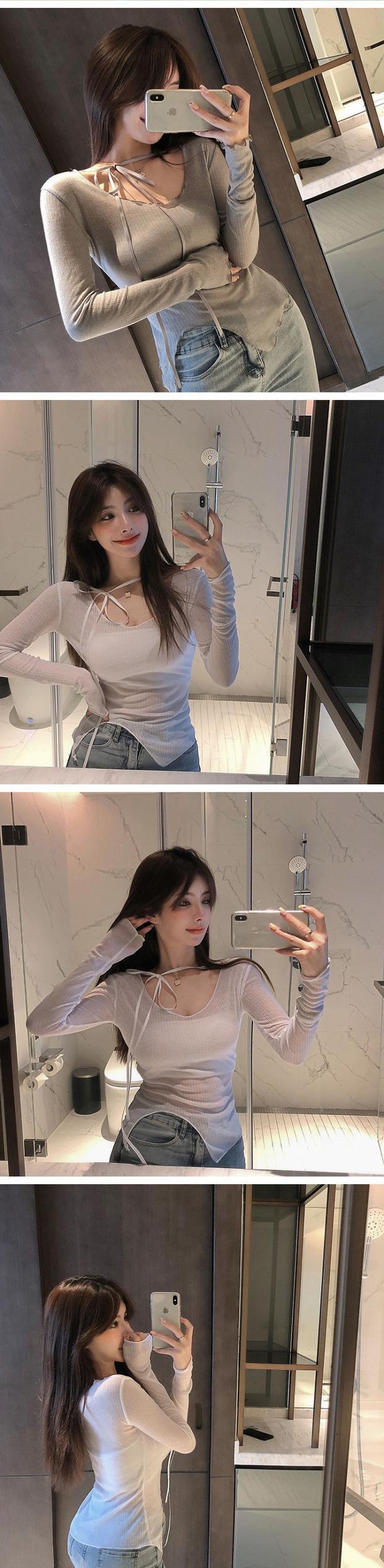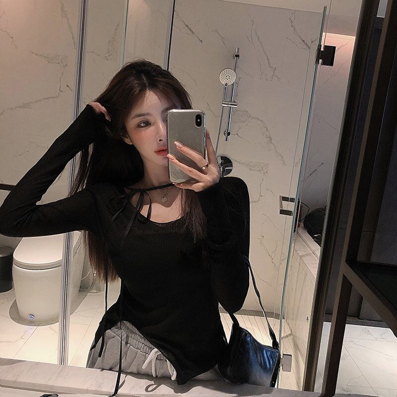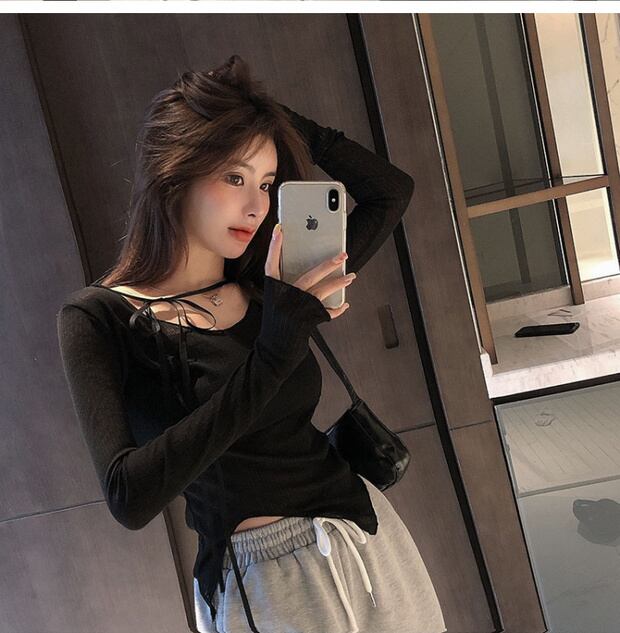 ピンクのセクシーなタイツ2020年初秋新デザインセンスニッチ長袖ボトミングシャツTシャツ女性イントレンド ブラックストロベリース50991874165