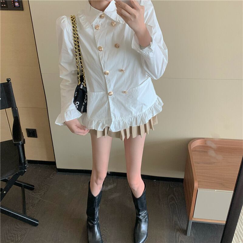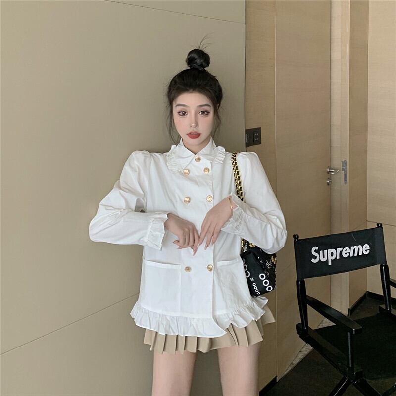 フランスのレトロな宮殿スタイルの白いシャツ女性の秋の長袖パフスリーブシャツジャケットデザインニッチトップ ブラックストロベリース76975665804