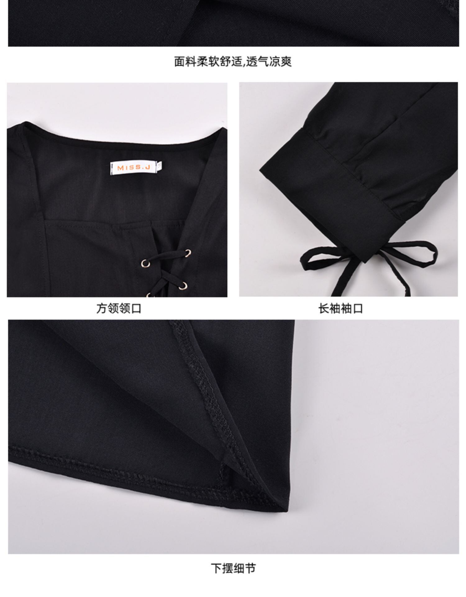 ヘップバーンスタイルブラックスクエアネックスプリットドレスレディース秋長袖タイトミドル丈スカート2020新気質スカート ブラックストロベリース86573217399