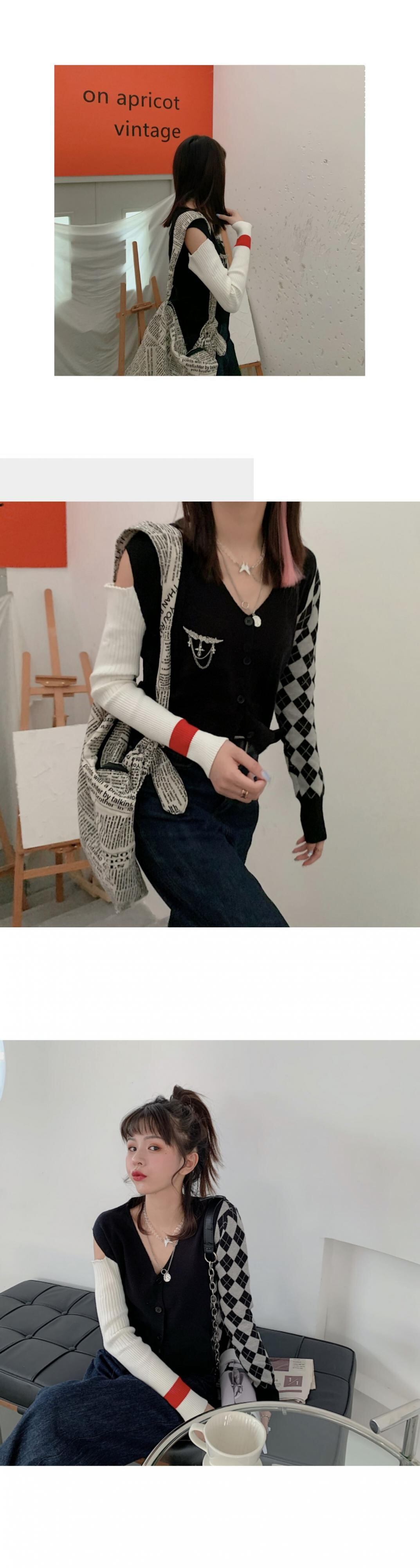 Vネックストラップレスブラックニットスモールカーディガンレディース秋スリム長袖ジャケット2020新作薄手アウタージャケット ブラックストロベリース40553954605