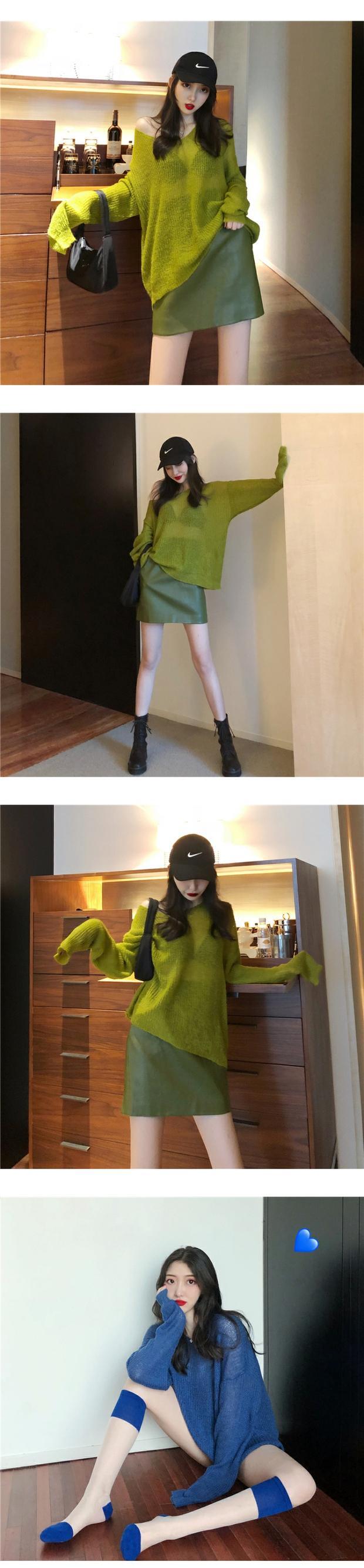 怠惰なスタイルのゆるい透かし彫り長袖モヘアセーター女性秋のプルオーバーアウターセーターコートブラックトップ ブラックストロベリース29738469920