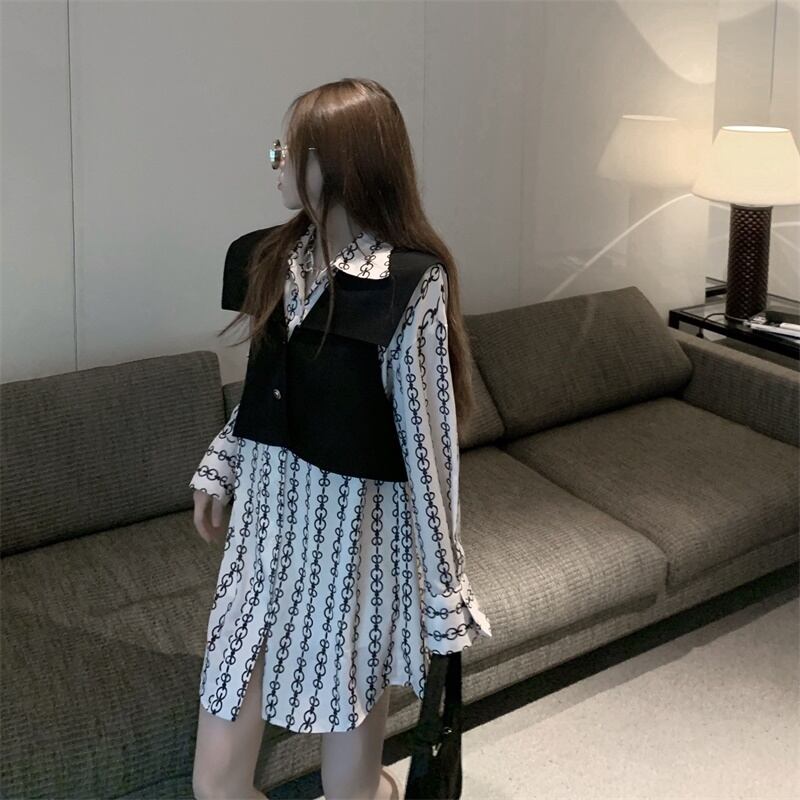 センスプリント白シャツ女性秋ルーズレイジースタイルスタイル長袖シャツミドル丈ニッチトップス ブラックストロベリース14114217384